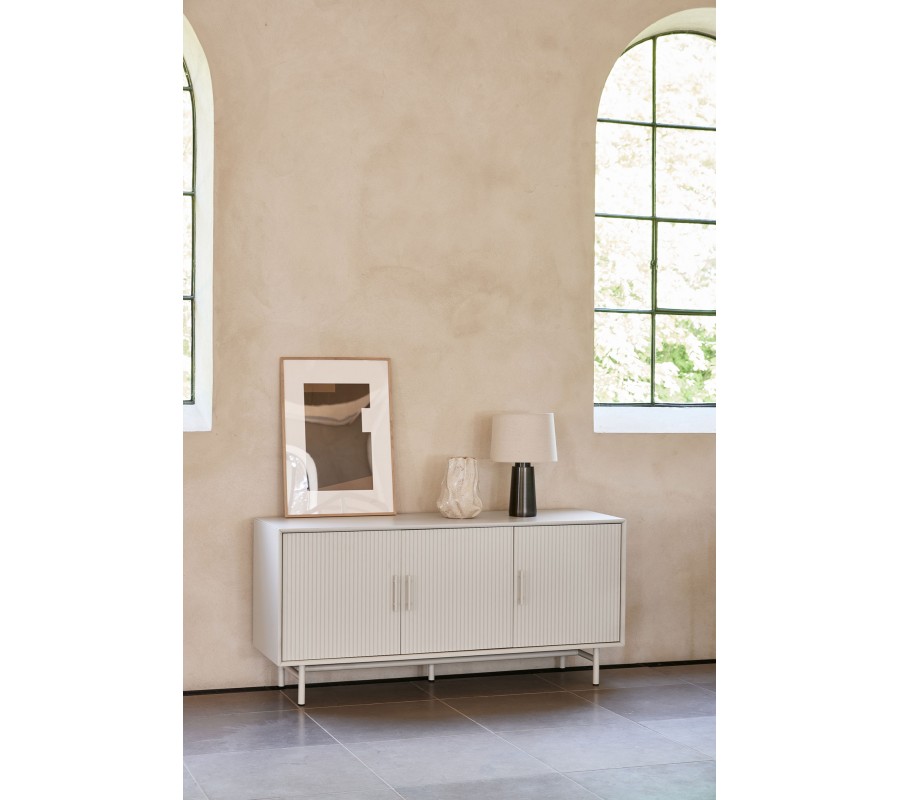 Příborník Hvidea vás zaujme harmonickým spojením moderního minimalismu a jemné elegance ve stylu art deco. Světlé provedení ve stylovém odstínu greige působí vkusně a nadčasově.