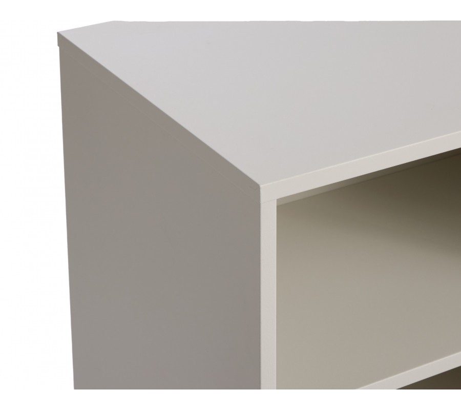 Úložný prostor obsahuje na pravé straně užší otevřenou část se dvěma policemi různé výšky, které do designu vnášejí jemnou asymetrii. Zbytek interiéru za posuvnými dvířky je rozdělen na čtyři stejně velké složky ve dvou úrovních. Vrchní deska v obdélníkovém tvaru nabízí dostatek místa pro dekorace, servírování nebo odkládání drobností.