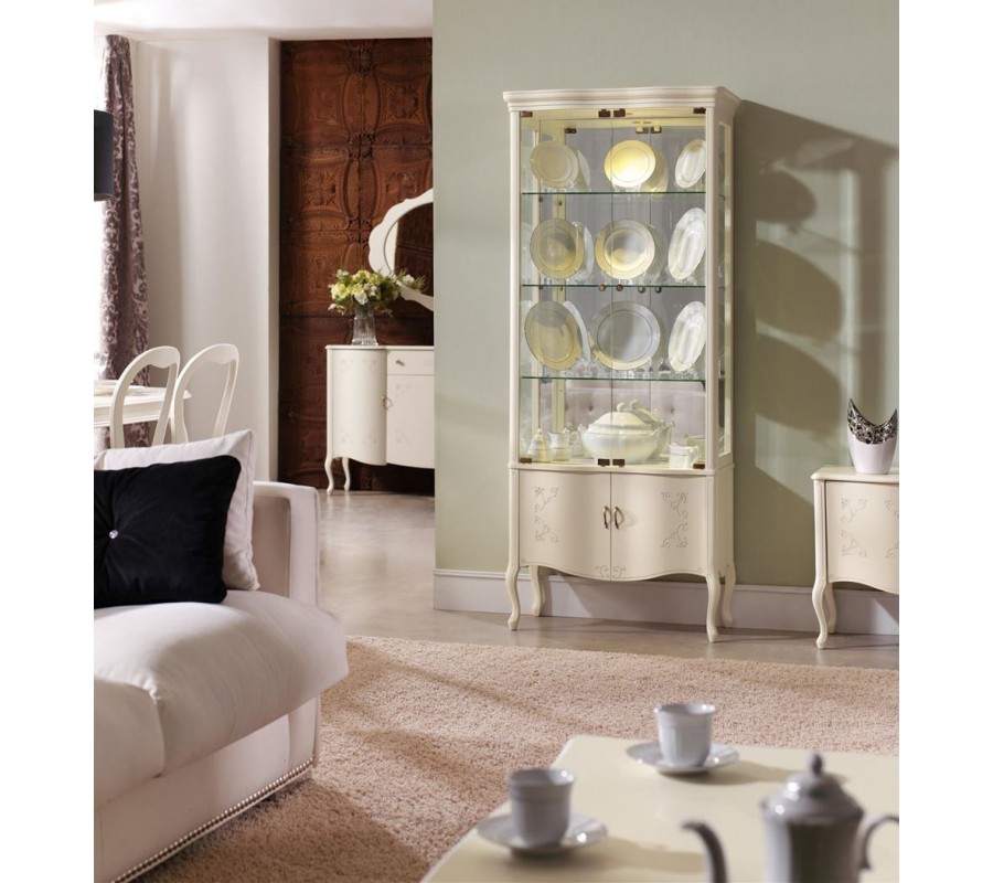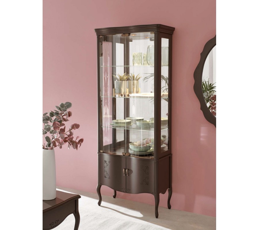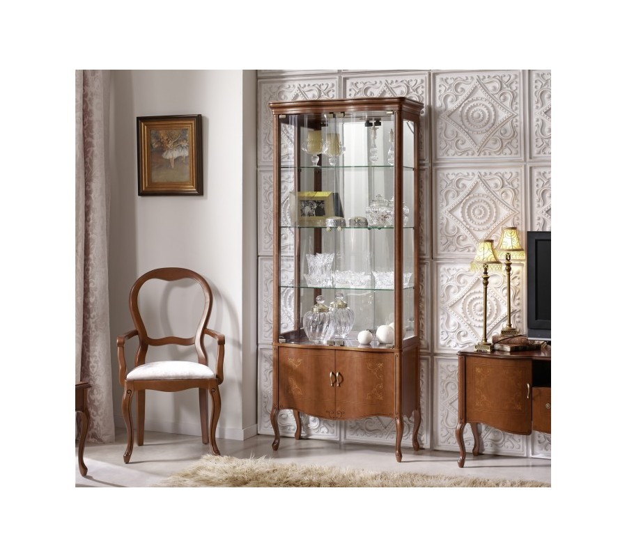 Luxusní rustikální vitrína Rustica prosklená zdobená vyřezáváním 78cm