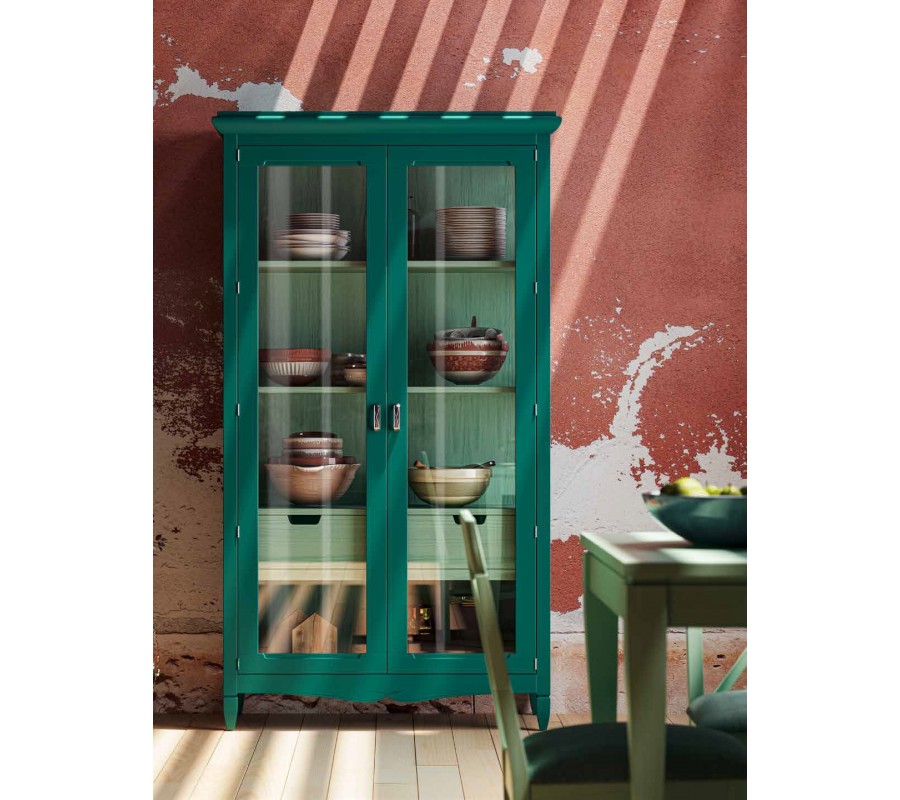 Klasická luxusní vitrína Amberes z masivu s poličkami, šuplíky a skleněnými dvířky 200cm