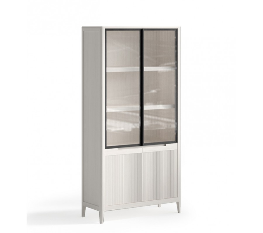 Luxusní moderní obdélníková vitrína Tallin s vroubkovaným sklem se čtyřmi dvířky 200 cm