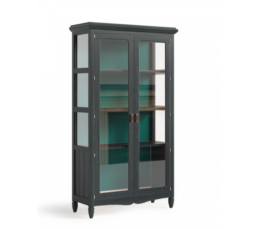Vitrína je vyráběna na zakázku z masivního dřeva, což zaručuje velkou pozornost k detailům. Barevné provedení si můžete zvolit ze vzorníku, který nabízí širokou paletu odstínů, od naturálních dřevěných až po extravagantnější syté a pastelové. Je možné barevně přizpůsobit i jednotlivé části nábytku, pro unikátní design přesně podle vašich představ.
