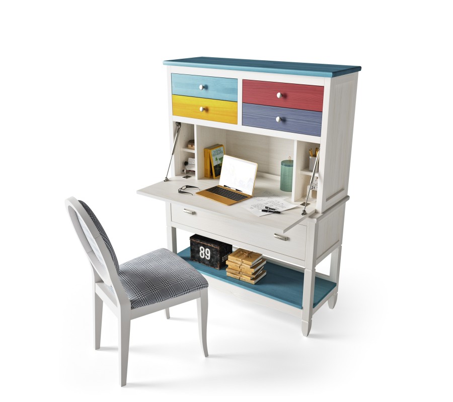 Psací stůl je vyráběn na zakázku z kvalitního masivního dřeva, což mu dodává vysokou kvalitu provedení a luxusní charakter. K dispozici je vzorník s širokou nabídkou povrchových úprav, od přírodních až po syté a pastelové kontrastní odstíny. Stejně tak lze barevně přizpůsobit jednotlivé části nábytku pro unikátní design přesně podle vašich představ.