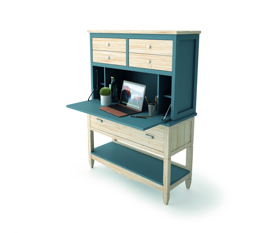 Psací stůl Amberes vás na první pohled zaujme svým designem inspirovaným tradičními sekretáři. Do prostoru přinese venkovský šarm v moderním provedení a kromě jeho vizuálu oceníte také praktický úložný prostor a flexibilitu tohoto nábytku.