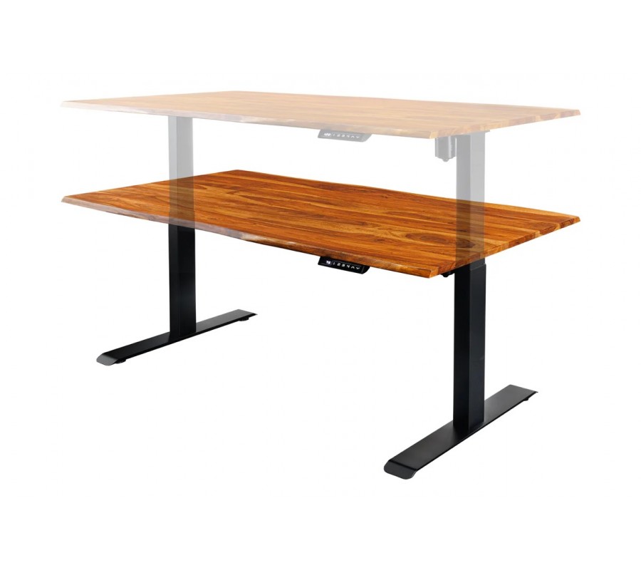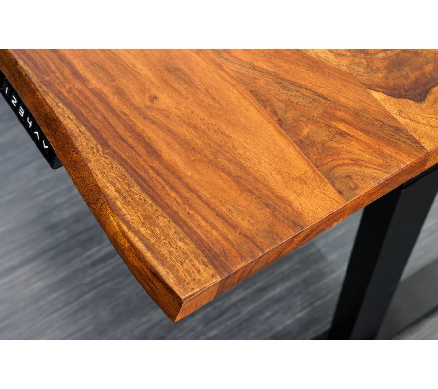 Industriální masivní výškově nastavitelný psací stůl Mammut z akáciového hnědého dřeva s kovovými černými nožičkami 76-120 cm