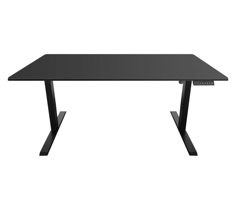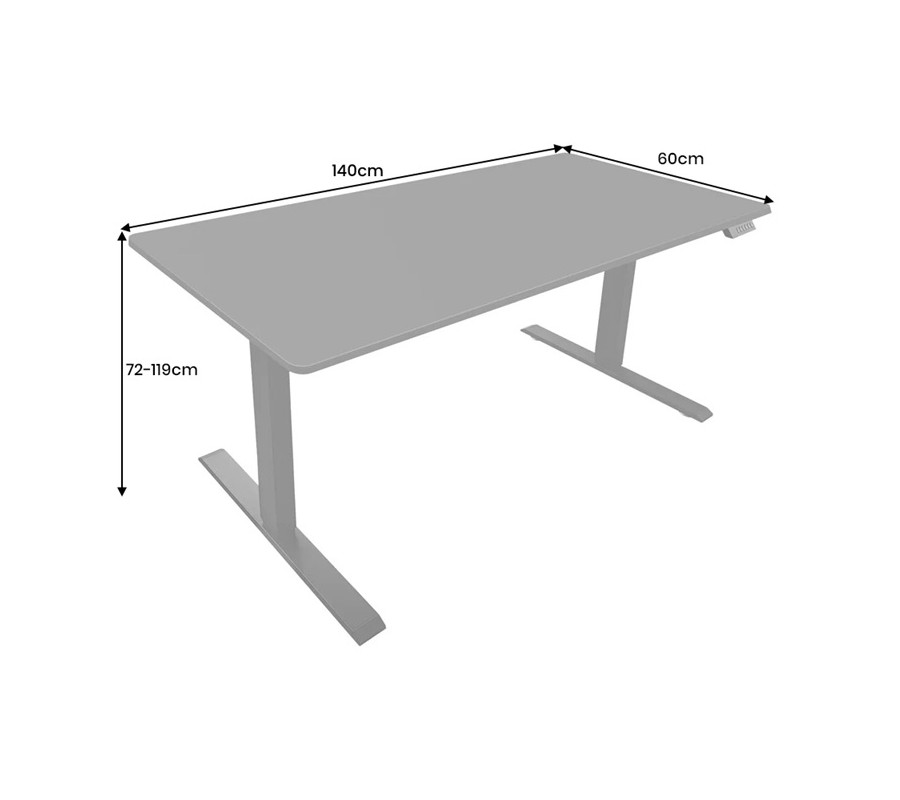 Stůl má minimalistický design, s obdélníkovou vrchní deskou s elegantně zaoblenými rohy a dvěma hranatými nohama, ukončenými ve spodní části dlouhou lineární podstavou. Na pravé straně je pod vrchní deskou diskrétně umístěn ovládací panel elektrického výškového nastavení. Rozmezí od 72 cm do 119 cm umožňuje pohodlnou práci v sedě i ve stoje.