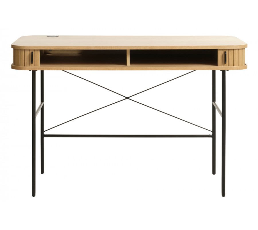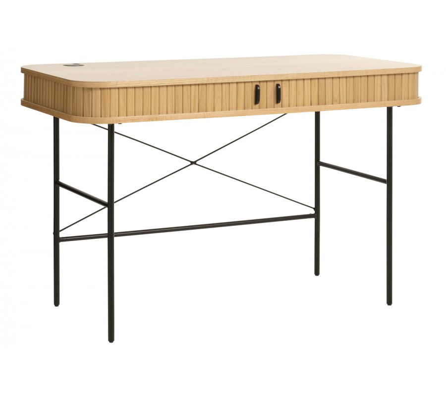 Skandinávský psací stůl Bornholm s úložným prostorem ve světlém hnědém dubovém provedení s černýma nohama 120 cm
