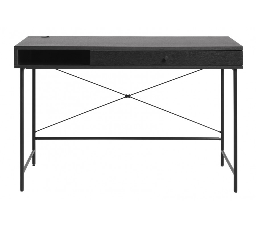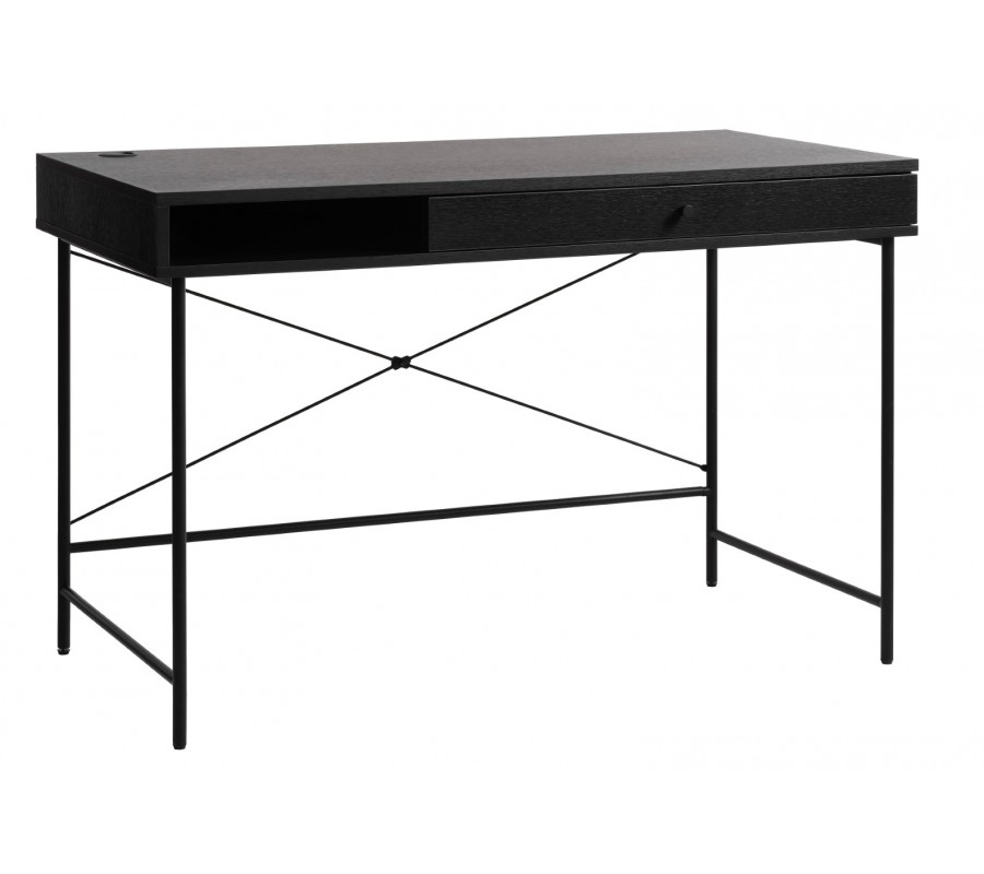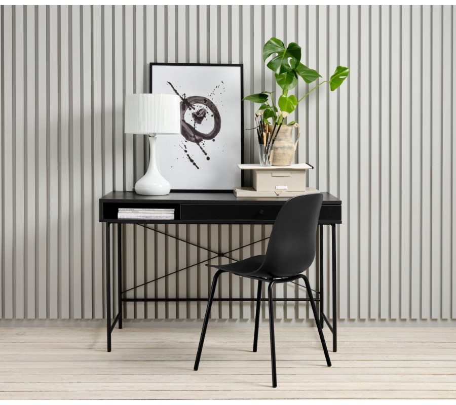 Psací stůl Malmo spojuje moderní minimalismus s industriálními prvky. Černé provedení působí sofistikovaným dojmem, snadno se kombinuje s dalším nábytkem a oceníte i praktický úložný prostor.