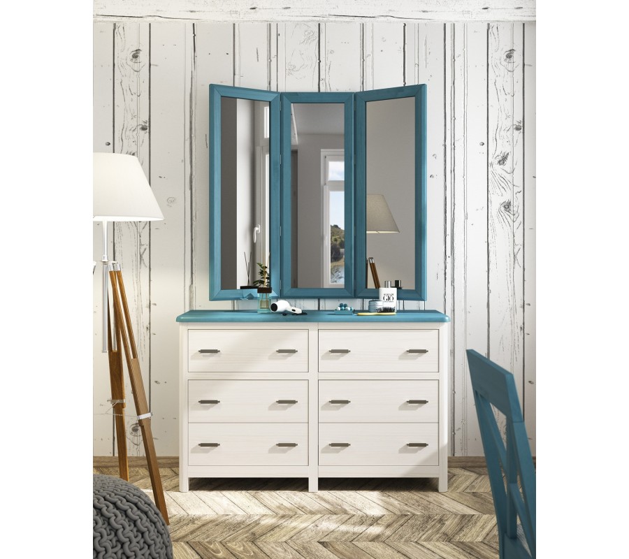 Komoda je vyráběna na zakázku z kvalitního masivního dřeva. Povrchovou úpravu si můžete vybrat ze vzorníku provedení, nabízejícího širokou paletu odstínů, od naturálních dřevěných až po extravagantnější syté a pastelové. Stejně tak lze barevně přizpůsobit i jednotlivé části nábytku pro unikátní design přesně podle vašich představ.