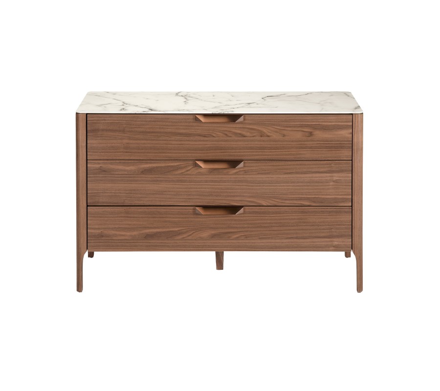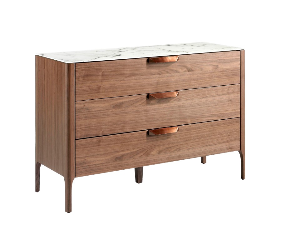 Luxusní moderní komoda Forma Moderna z hnědého ořechového dřeva s vrchní deskou s designem kalkatského mramoru 120 cm
