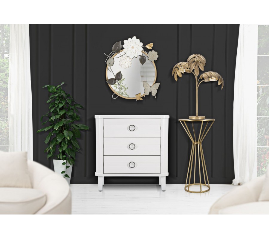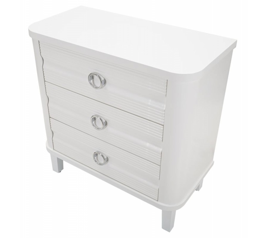 Luxusní venkovská bílá komoda Lucido Bianco s lesklým lakem a třemi zásuvkami s kulatými úchyty 84 cm
