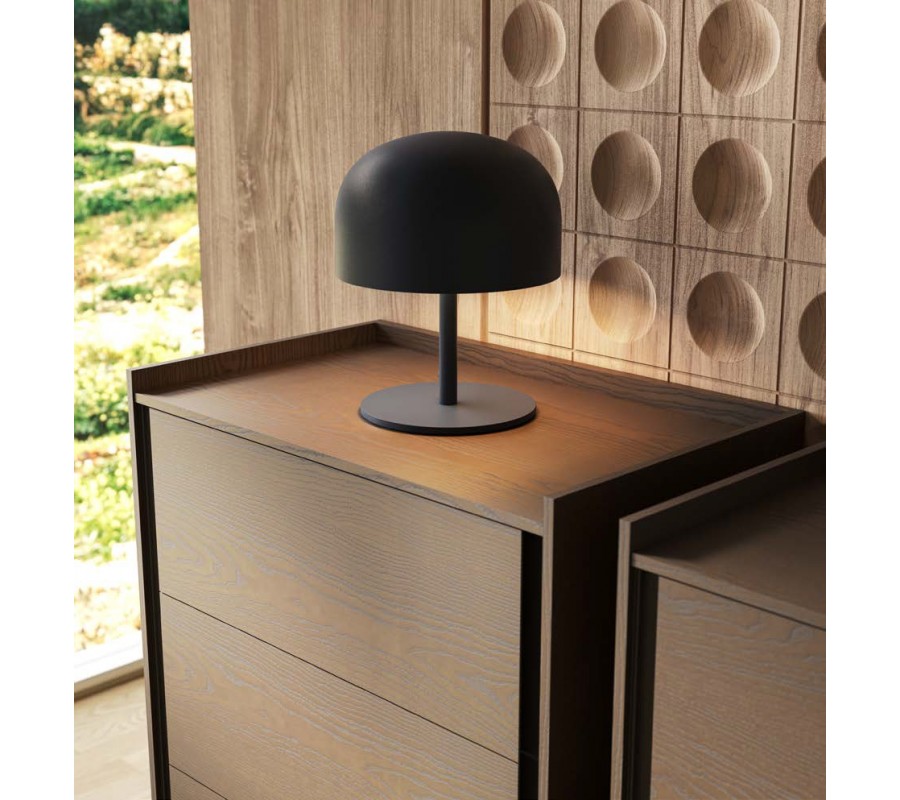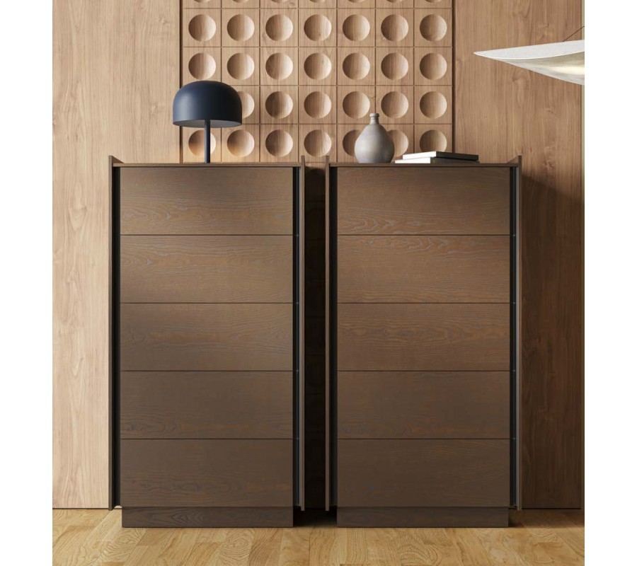 Disponuje pěti prostornými zásuvkami, které se otevírají z bočních stran. Charakteristické mezery po obou stranách vytvářejí vizuální odlehčení a nahrazují tradiční úchytky. Zajímavým detailem je i vyvýšená horní boční a zadní hrana, která vytváří jemný rám kolem vrchní plochy a zvyšuje praktičnost při odkládání předmětů.