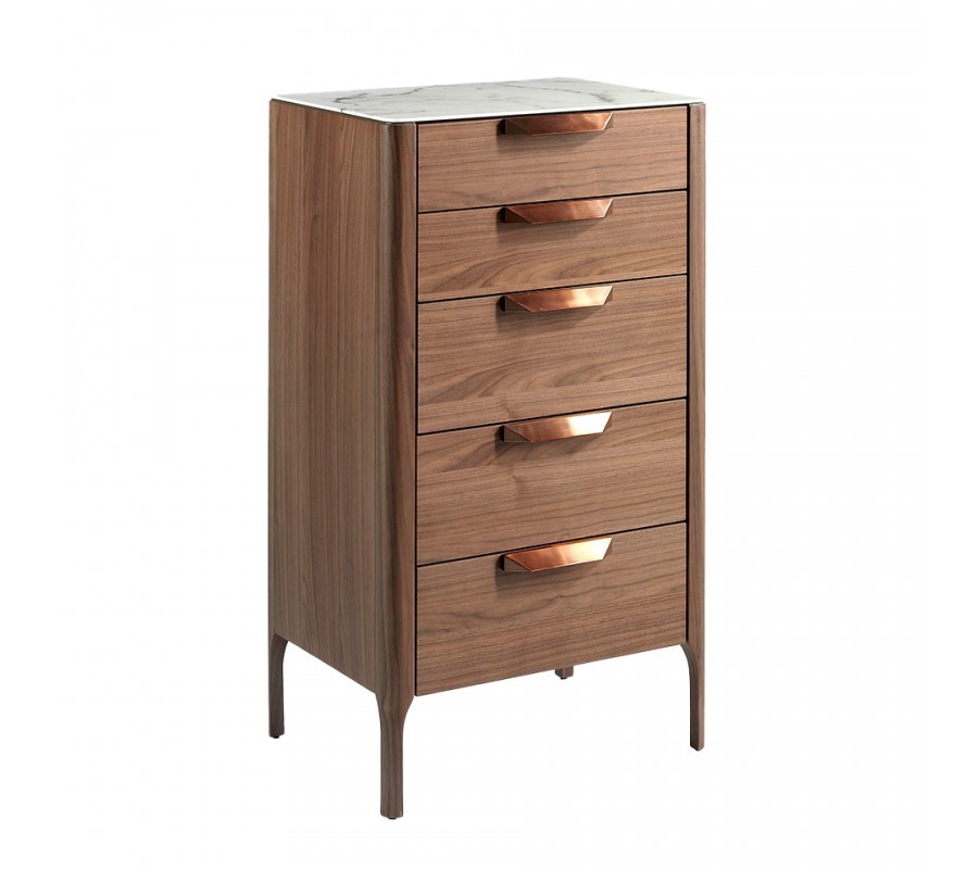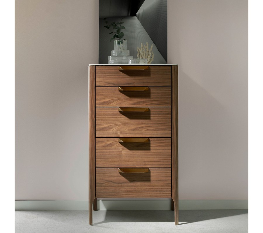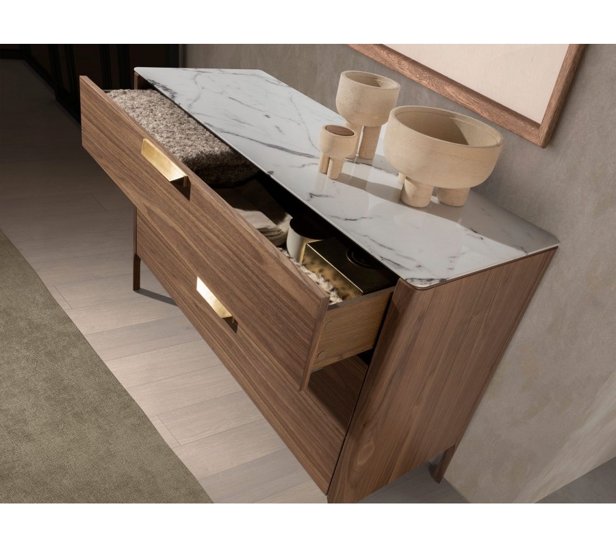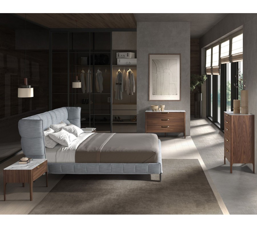 Sestava nábytku Forma Moderna přinese do vaší ložnice luxus současného italského designu. Dřevo v ořechově hnědé barvě přinese do prostoru pocit tepla, zatímco kovové detaily a exkluzivní mramor vytvoří stylový elegantní vizuál.