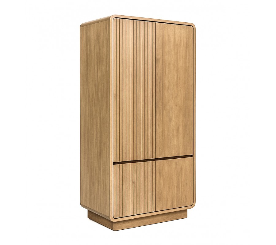 Sestavu propojuje moderní design s minimalistickým zdobením v podobě vertikálního vyřezávaného reliéfu. Zaoblené rohy zjemňují lineární siluety a jsou inspirovány tvz. waterfall nábytkem, populárním zejména ve 20. letech minulého století. Kombinace současného provedení s tímto retro prvkem působí nadčasovým dojmem.