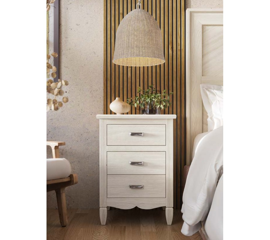 Luxusní noční stolek Amberes spojuje ve svém designu moderní styl s prvky venkovské estetiky. Okouzlí vás svým nadčasovým vizuálem, který působí elegantně a útulně zároveň a oceníte i praktický úložný prostor.