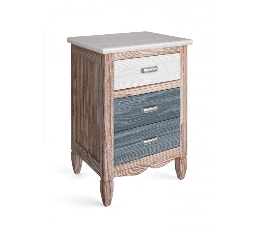Luxusní venkovský noční stolek Amberes se třemi šuplíky a vyřezávaným zdobením z masivního dřeva 69 cm