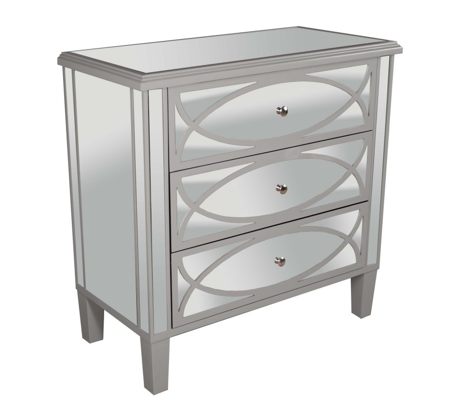 Art-deco zrcadlový stylový noční stolek Padme se třemi zásuvkami na nožičkách 65cm