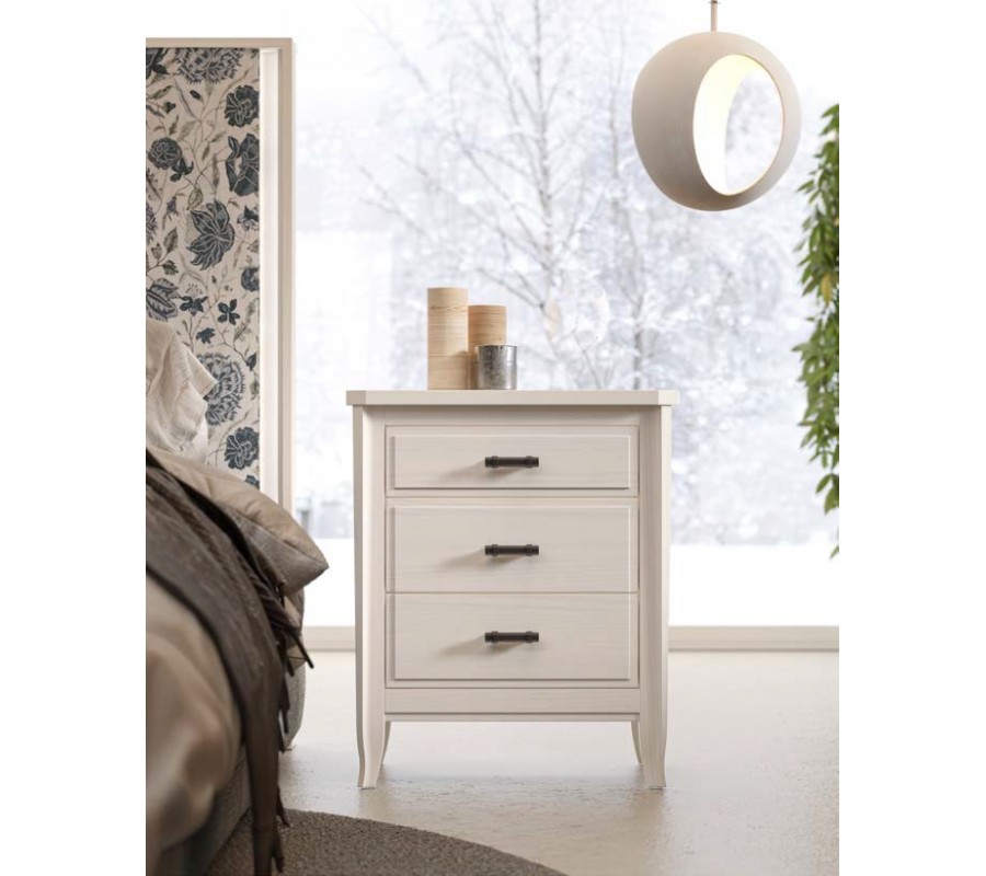 Luxusní moderní noční stolek Genova z masivního dřeva se třemi zásuvkami 67 cm