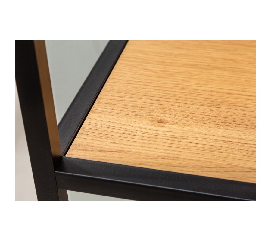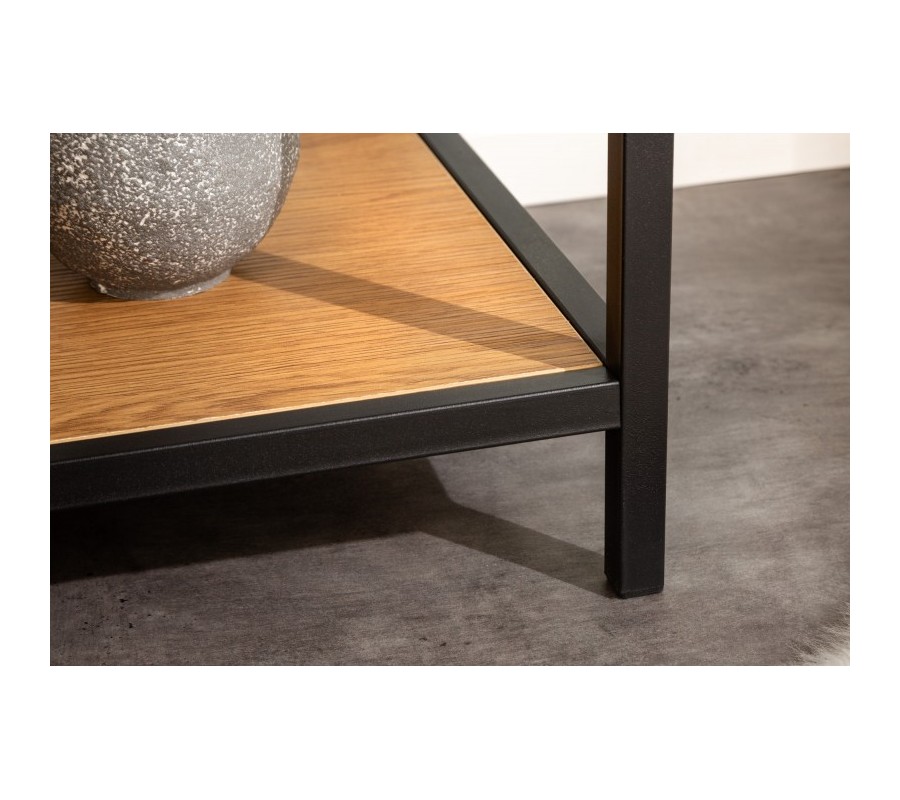 Pro každý industriálně zařízený interiér doporučujeme využít designový noční stolek Industria Natura z kvalitně dýhovaného dřeva, což zaručí přírodní vzhled s drsnými kovovými prvky. Industriální noční stolek Industira Natura je vyráběn ze zmíněného bledě hnědého dřeva, chráněného kvalitní dýhou v dubovém provedení. Vrchní desku se dvěma poličkami chrání kovové nožičky s práškovým černým nátěrem, což podtrhne industriální vzhled stolku. Díky svému univerzálnímu vzhledu a provedení dvou otevřených poliček s výškovým rozdílem 34 centimetrů můžete využít noční stolek Industria Natura i do předsíně jako telefonní stolek či příruční stolek. Moderní noční stolek v industriálním stylu Industria Natra doporučujeme kombinovat s nábytkem ze stejnojmenné kolekce nebo z kolekce Industria Negra a Durante.