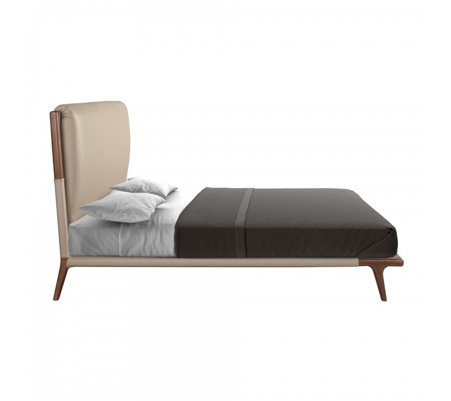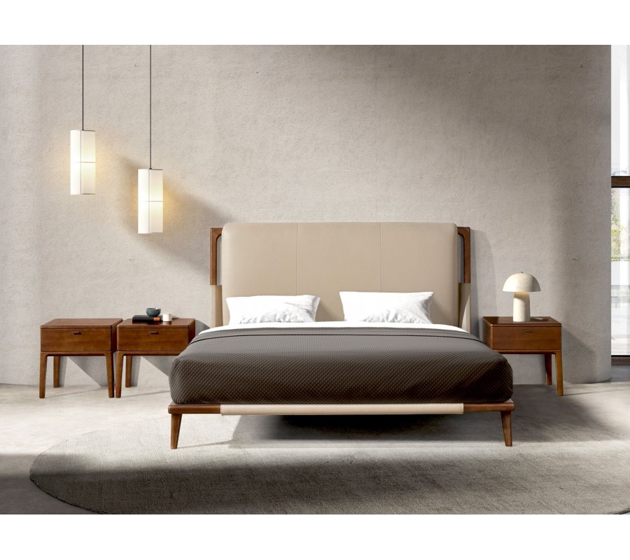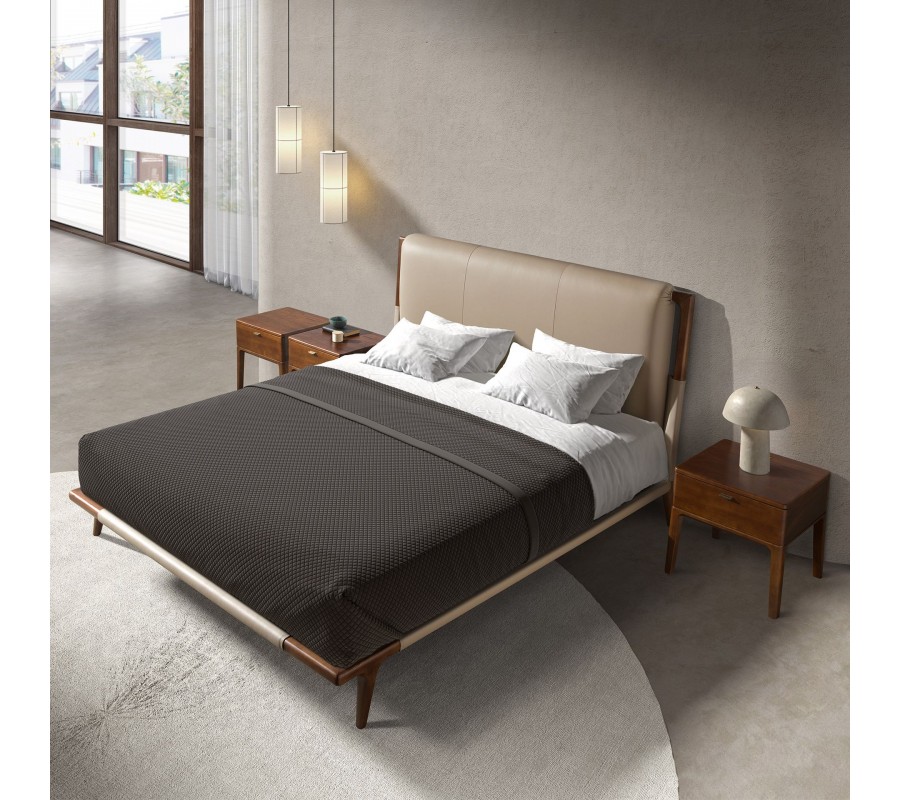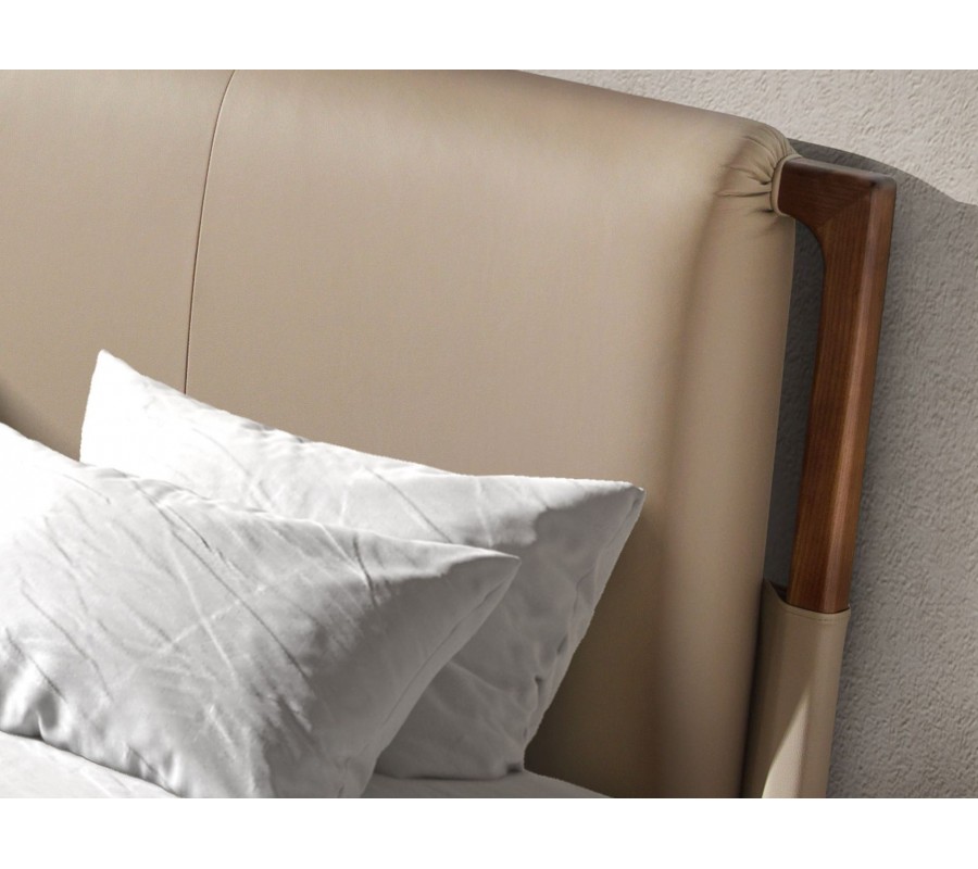 Manželská postel Charmoin je dokonalým spojením moderního stylu a luxusního italského designu. Nadčasová kombinace kůže a dřeva působí příjemným teplým dojmem a paleta zemitých odstínů dodá místnosti dotek elegance a sofistikovanosti.