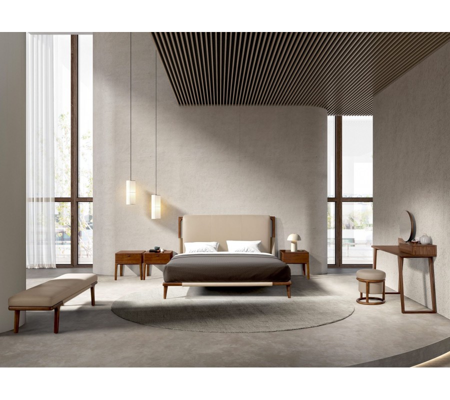 Manželská postel Charmoin je skvělou volbou do moderní ložnice, ve které chcete vytvořit luxusní a zároveň harmonickou atmosféru s přírodním nádechem. Můžete ji doplnit komodou a nočním stolkem v ořechovém provedení či s koženým potahem ve světlých odstínech, například z naší široké nabídky exkluzivního italského nábytku.