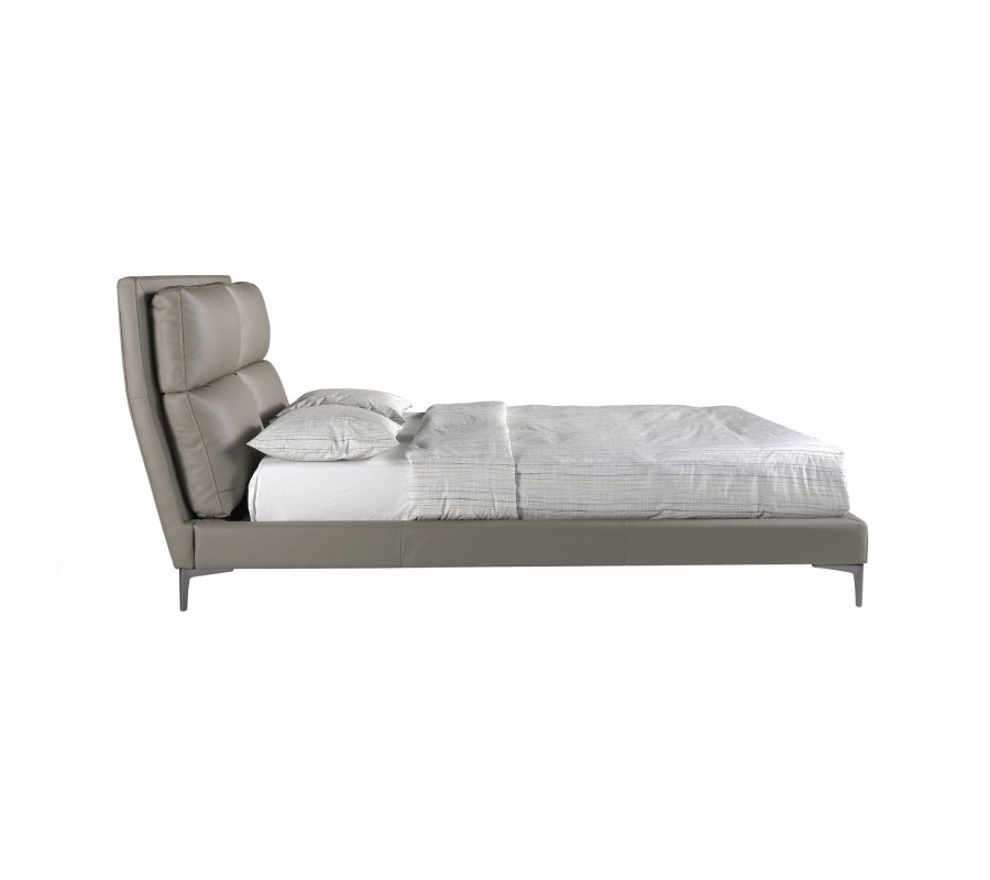 Postel má pevnou konstrukci z masivního dřeva a je položena na čtyř štíhlých nožičkách z nerezavějící oceli v tmavém lesklém provedení. Nožičky akcentují rohy postele a poskytují výbornou stabilitu. Jejich tvar v kombinaci s povrchem, který odráží světlo postel vizuálně odlehčuje a nábytek tak působí vzdušným dojmem.