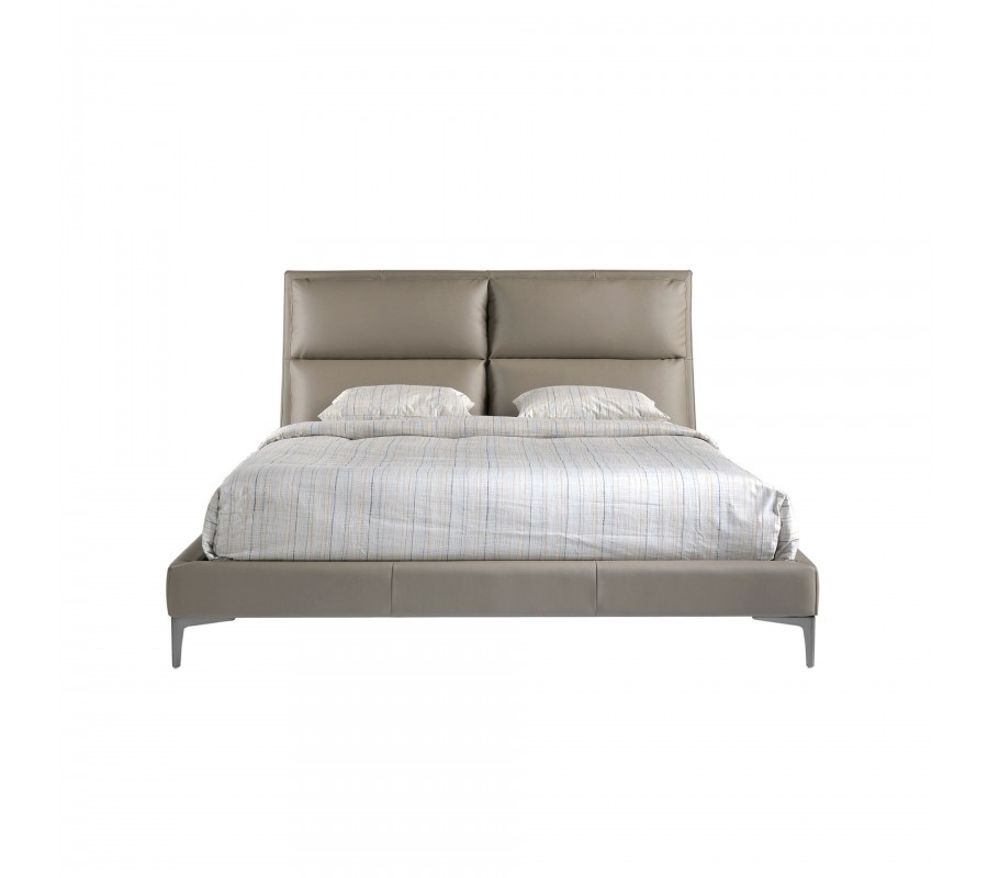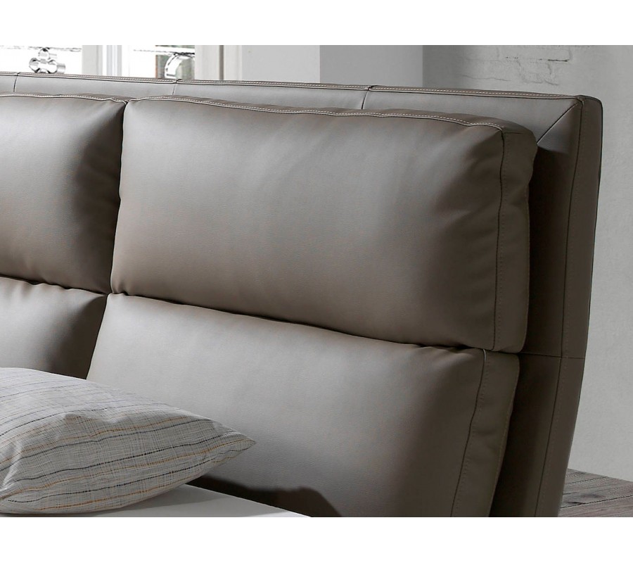 Luxusní moderní manželská postel Charmoin s čalouněným prošívaným čelem a norkově béžovým koženým potahem 176 cm