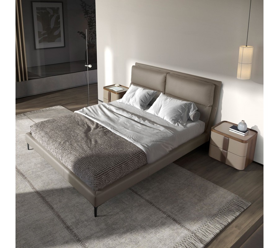 Manželská postel Charmoin spojuje moderní italský design s luxusním minimalismem. Kůže působí teplým dojmem a v kombinaci se sofistikovaným norkově béžovým odstínem dělá z tohoto nábytku elegantní středobod vaší ložnice.