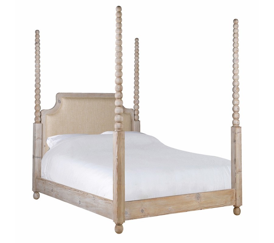 Postel má obdélníkovou základnu a designu dominují čtyři vysoké sloupky, umístěné na rozích. Ve spodní části mají hranatý tvar, doplněný kulatou nožičkou a ve vrchní části je zdobí honosné vyřezávání v podobě na sobě uložených kuliček. Design působí elegantně a bohatá silueta zároveň vytváří luxusní vizuál.