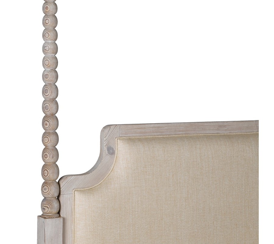 Luxusní vintage béžová manželská postel Boia z masivního dřeva s čalouněným čelem a vyřezávanými sloupky 162 cm