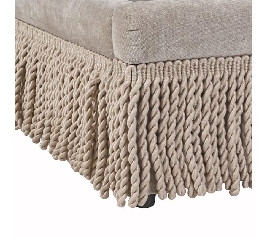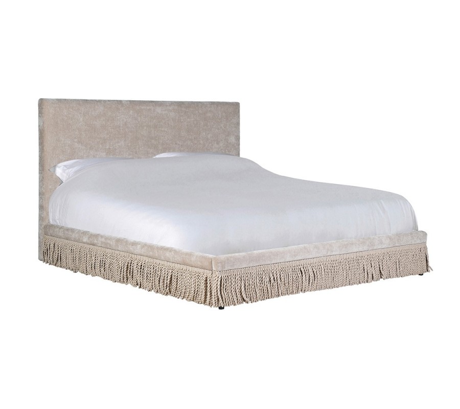 Luxusní moderní manželská béžová postel Trist s obdélníkovým čelem s dekorativními třásněmi po obvodu 215 cm