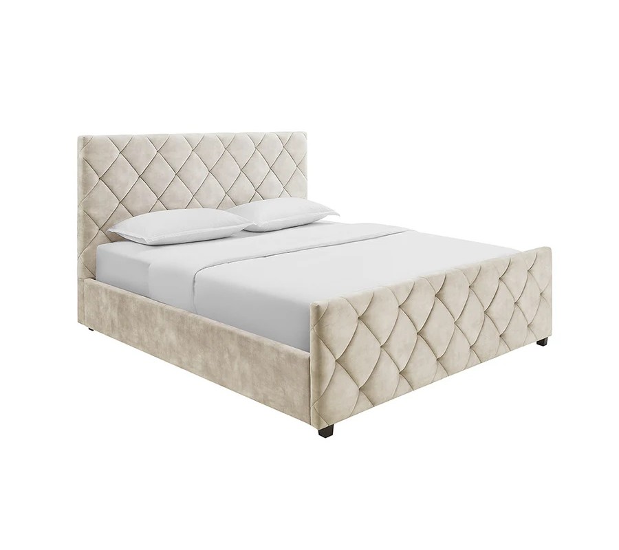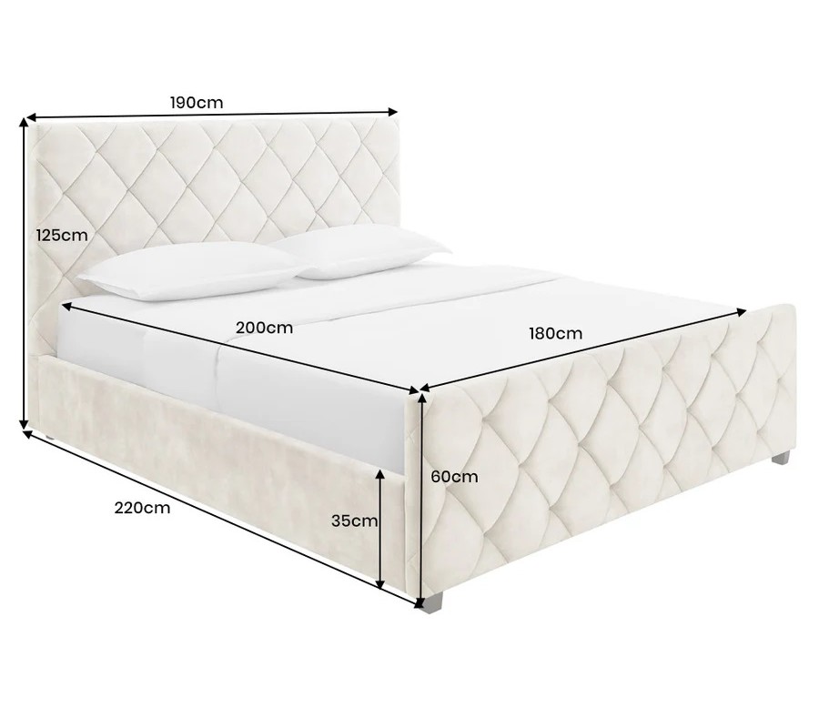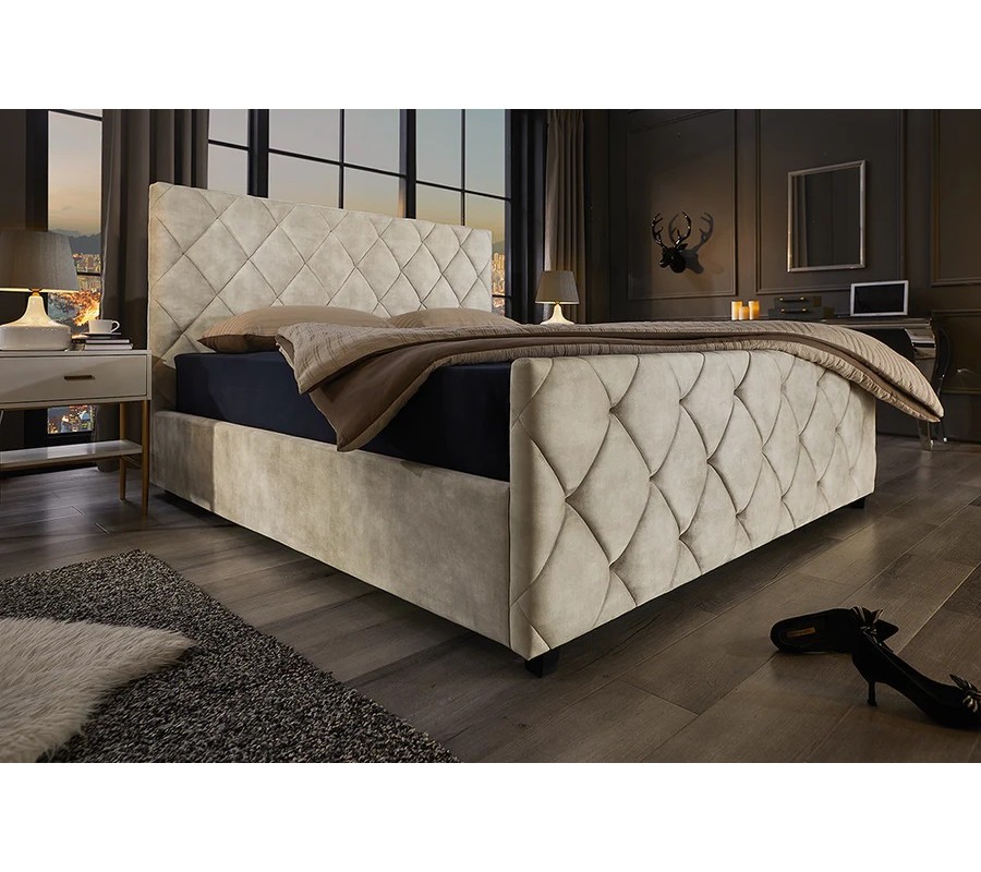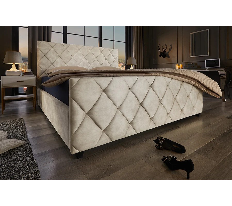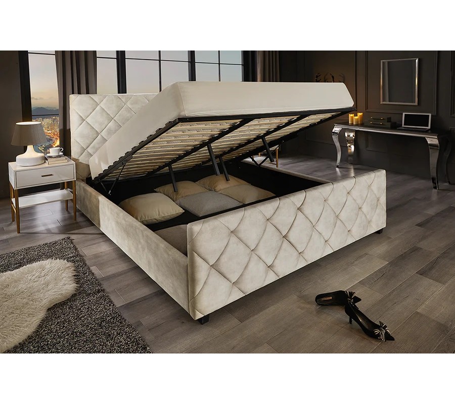 Designová moderní manželská postel Angelica s úložným prostorem a béžovým sametovým potahem s diamantovým prošíváním 190 cm