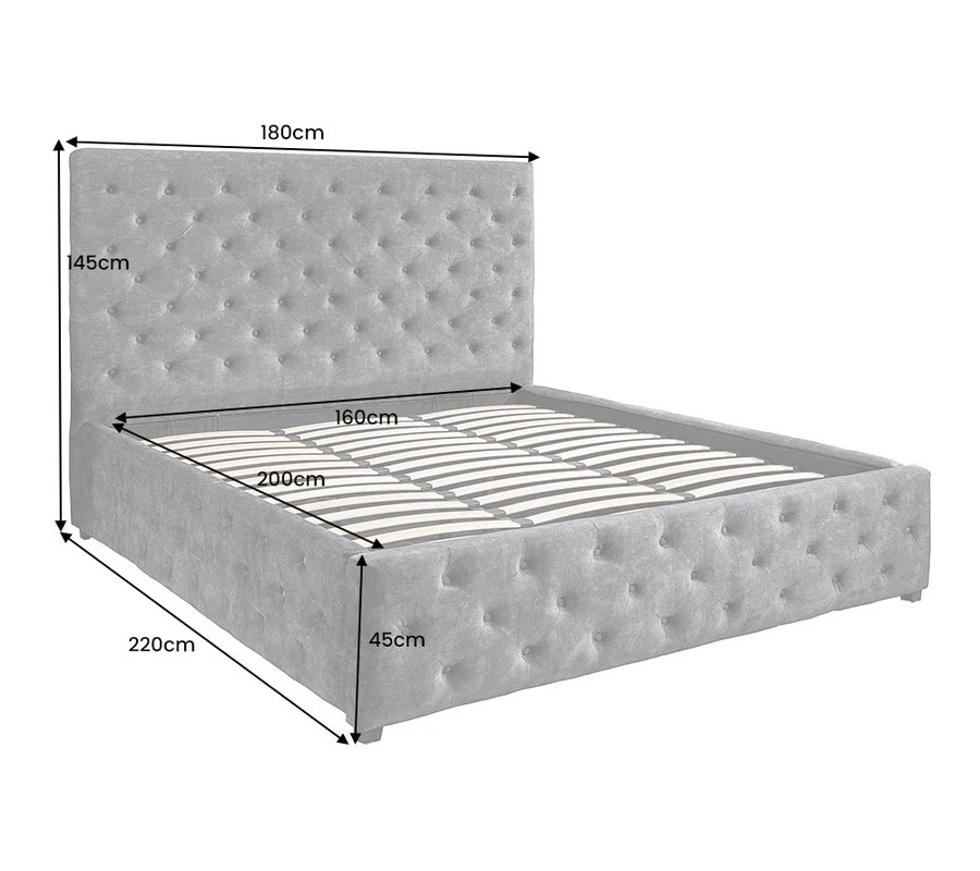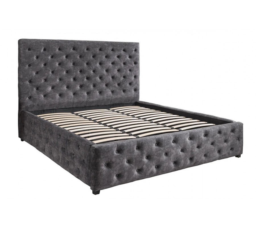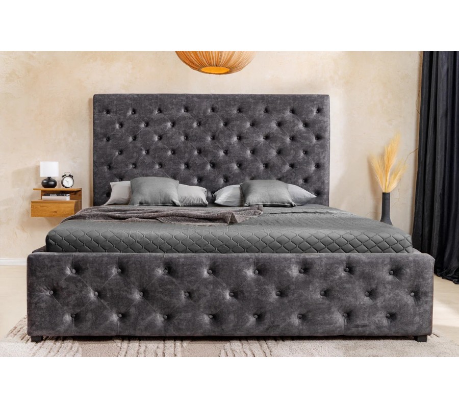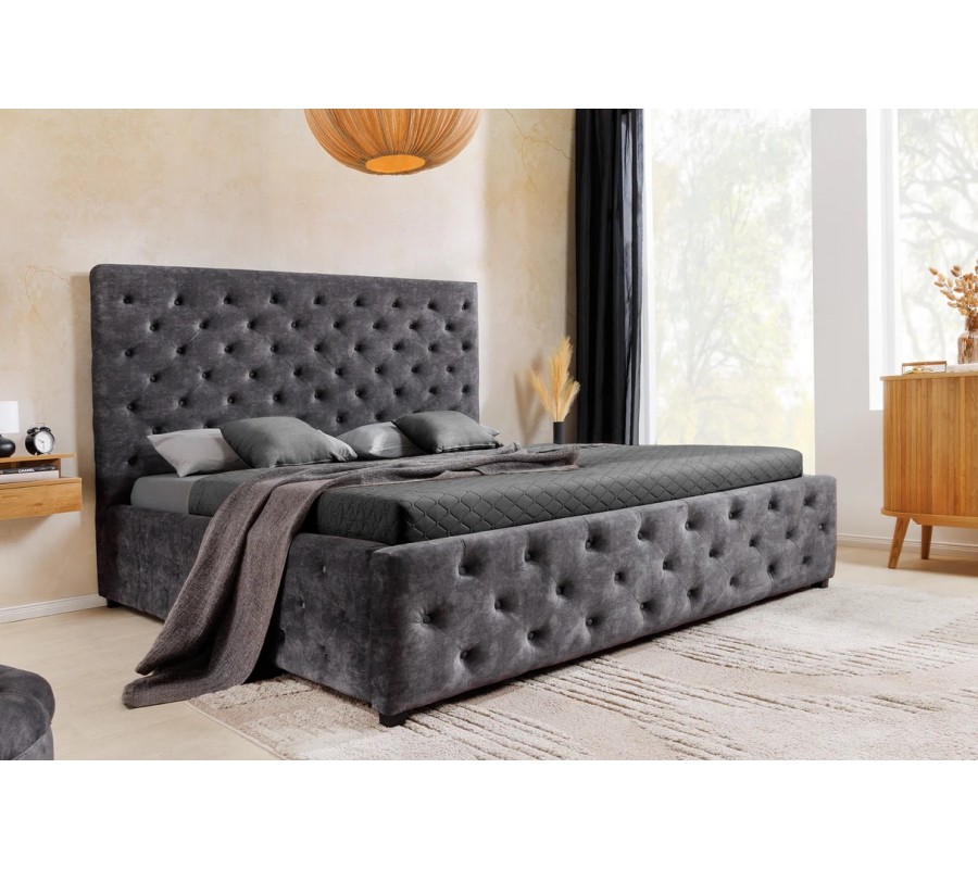 Moderní čalouněná manželská postel Kreon s úložným prostorem a šedým sametovým potahem s chesterfield prošíváním 180 cm