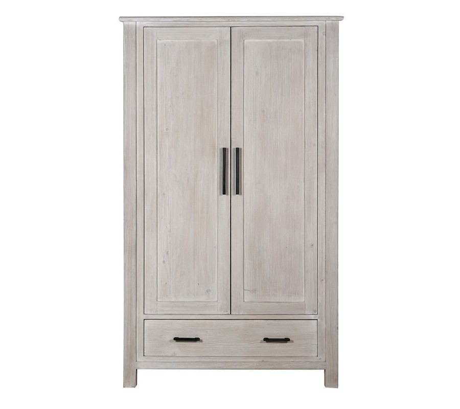 Luxusní skandinávská šatní skříň Arhus s dvojitými dvířky a šuplíkem z recyklovaného dřeva v krémové barvě 200 cm