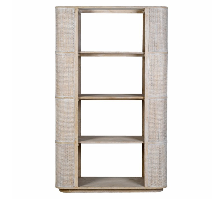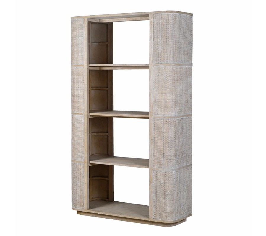 Knihovna se výborně hodí do venkovských, vintage, provensálských i etno interiérů, ale rovněž vynikne i v elegantně laděném domě u moře nebo ve světlém městském interiéru s přírodními prvky. Ideálně se kombinuje s masivním dřevem ve světlých odstínech, lnem, bavlnou, keramikou v krémových a pískových barvách, jakož is ratanovými nebo proutěnými doplňky. Celek působí harmonicky, nadčasově a mimořádně útulně.