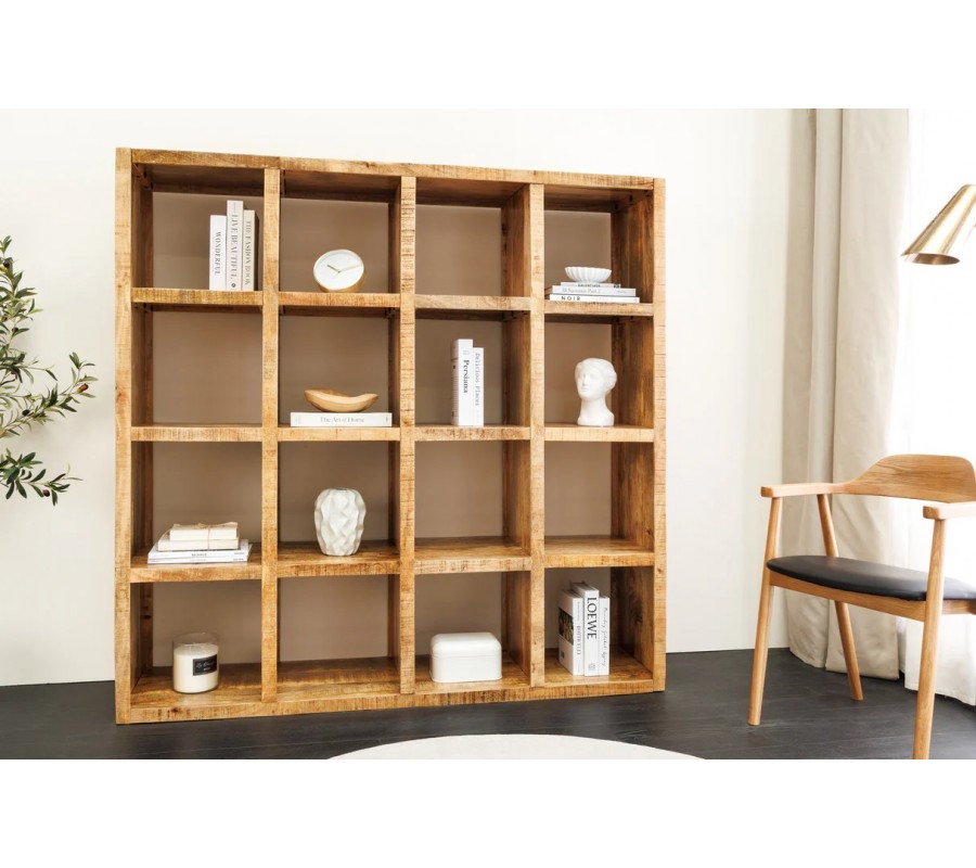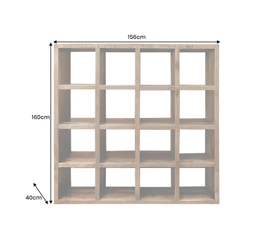 V designu dominují striktní rovné linie a pravé úhly, což dodává nábytku moderní výraz. Vrchní a boční strany jsou plné a spodní police slouží zároveň i jako podstava bez nožiček. Vertikální a horizontální příčky rozdělují úložný prostor na šestnáct čtverečních polic, rozmístěných v rozložení 4x4. Otevřený koncept z přední i zadní strany poskytuje velkou flexibilitu a regál můžete umístit ke stěně i volně do prostoru, jako předělovač.