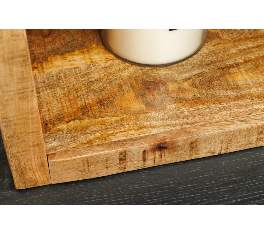 Masivní mangové dřevo přináší do moderního geometrického designu organický prvek. Má světlou hnědou barvu s výraznou kresbou letokruhů, která vytvoří v prostoru pocit přírodního tepla. Je také mimořádně pevné, což zaručí nábytku výbornou odolnost.
