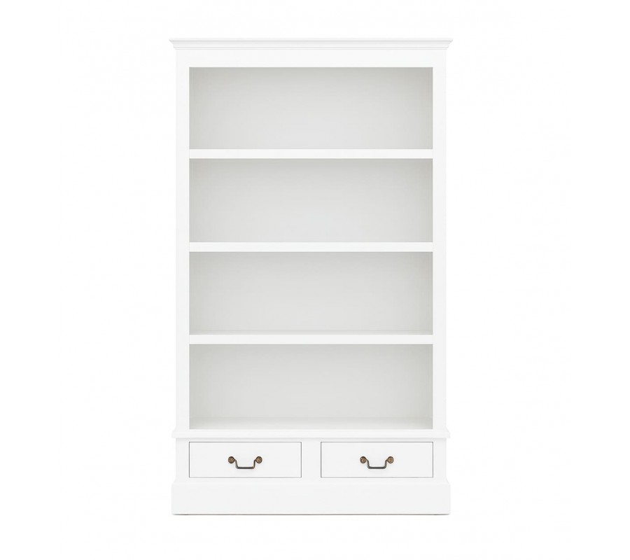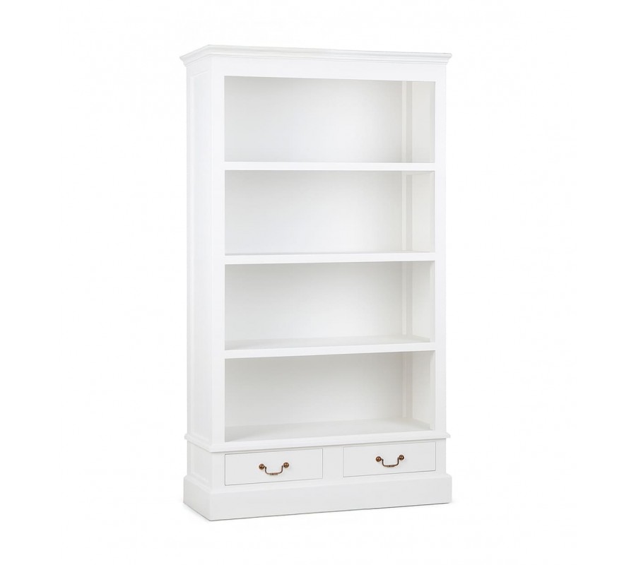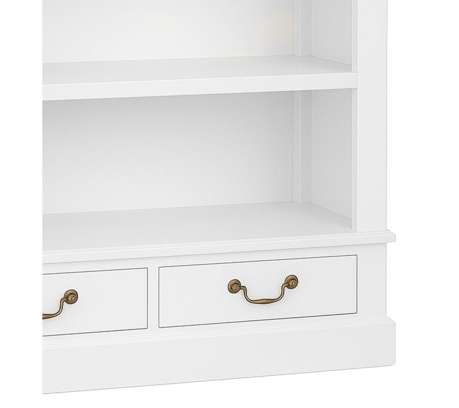 Luxusní klasická bílá knihovna Donelly se čtyřmi policemi a dvěma šuplíky z masivního mahagonového dřeva 180 cm