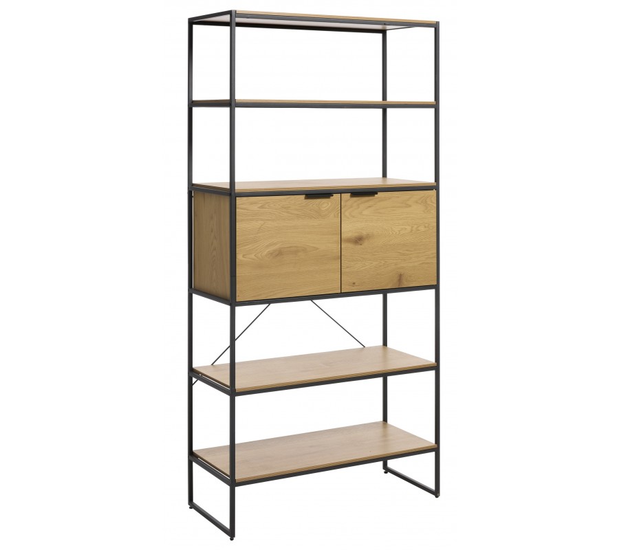Regál Holstebro vás okouzlí svým moderním designem s nádechem industriální estetiky. Poskytuje kombinovaný otevřený i uzavřený úložný prostor, ideální pro knihy, dekorace či dokumenty.