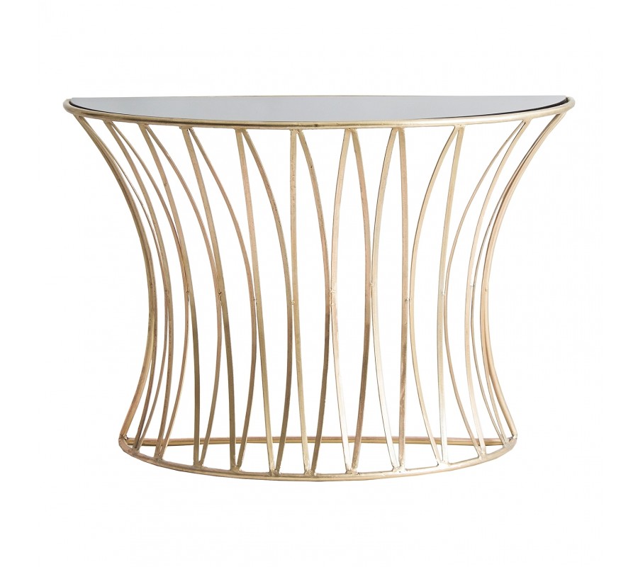 Art-deco luxusní konferenční stolek Basey je vyroben z kovové konstrukce ve zlaté barvě. Vrchní část tvoří skleněná krystalová deska, na kterou se dají ukládat drobnosti. Hodí se do obývacího pokoje, popřípadě jídelny, své využití si najde i jako příruční stolek, kávový stolek, je už jen na Vás jako úkol mu zadáte. Dobře se kombinuje s jinými prvky v Art-deco stylu, popřípadě v světlých barvách. Celkově působí kontrastně a osvětlí Váš interiér.