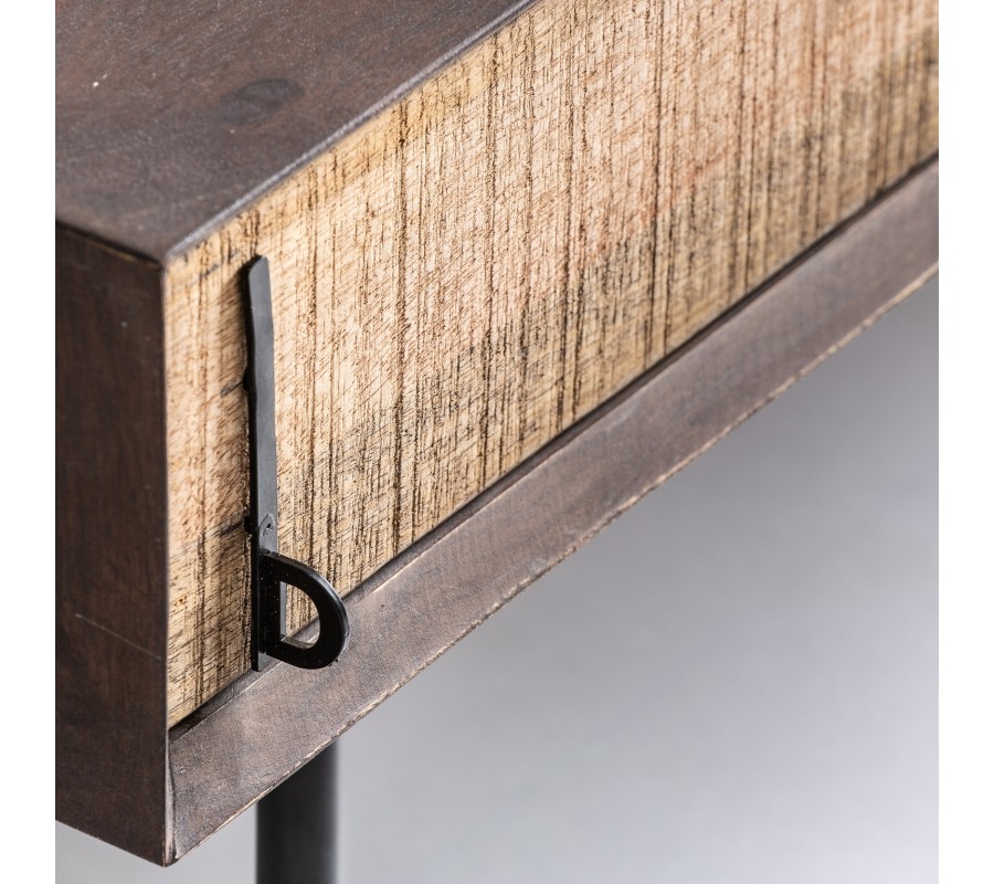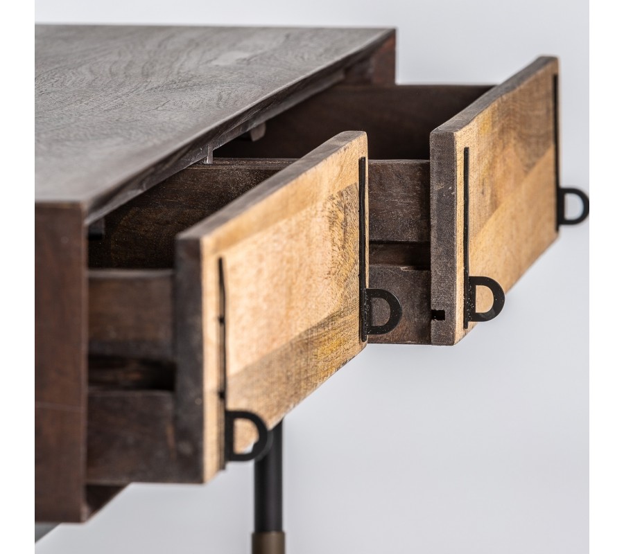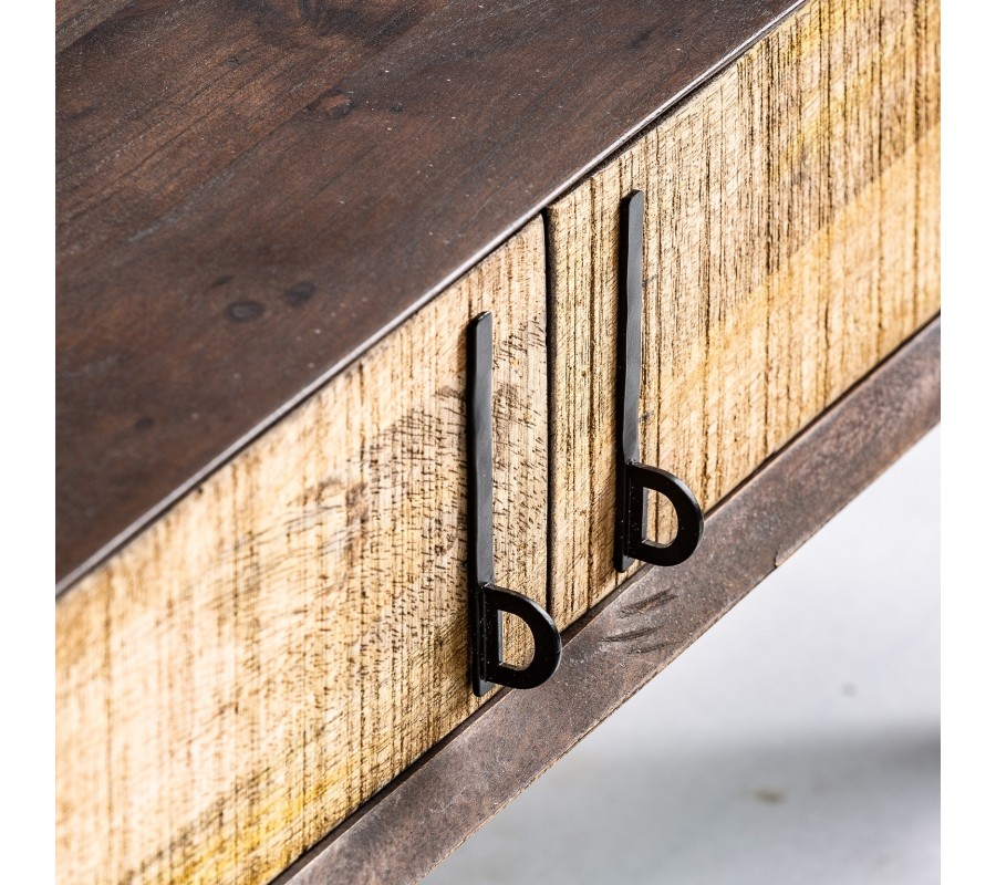 Jedinečný konferenční stolek Libor z luxusního mangového dřeva je skvělým kouskem pro každého milovníka moderního stylu. Designová konstrukce v barevné kombinaci světlejšího a tmavšího dřeva je velmi impozantní a zaručeně upoutá. Stolek disponuje dvěma praktickými zásuvkami, které vám poslouží k uskladnění menších předmětů. Zásuvky mají stylové železné rukojeti doplňující celý moderní design. Konferenční stolek Libor zaručeně zapadne do vaší moderní obývacího pokoje a ideálně vynikne v kombinaci s hnědým dřevěným nábytkem a doplňky v přírodních barvách.