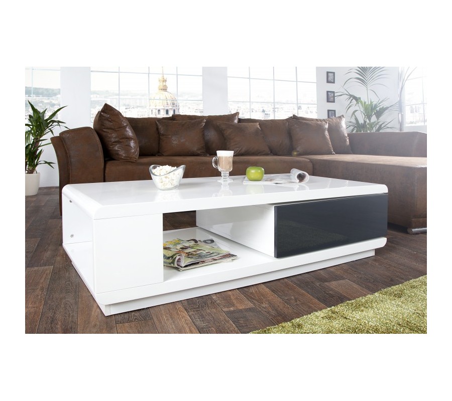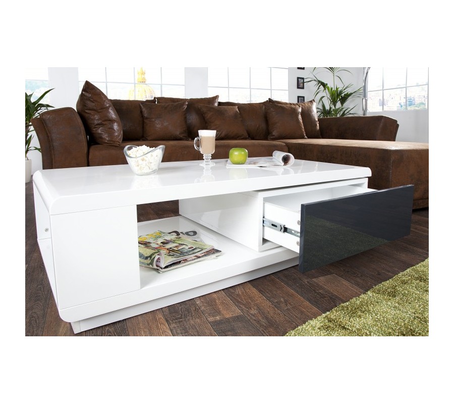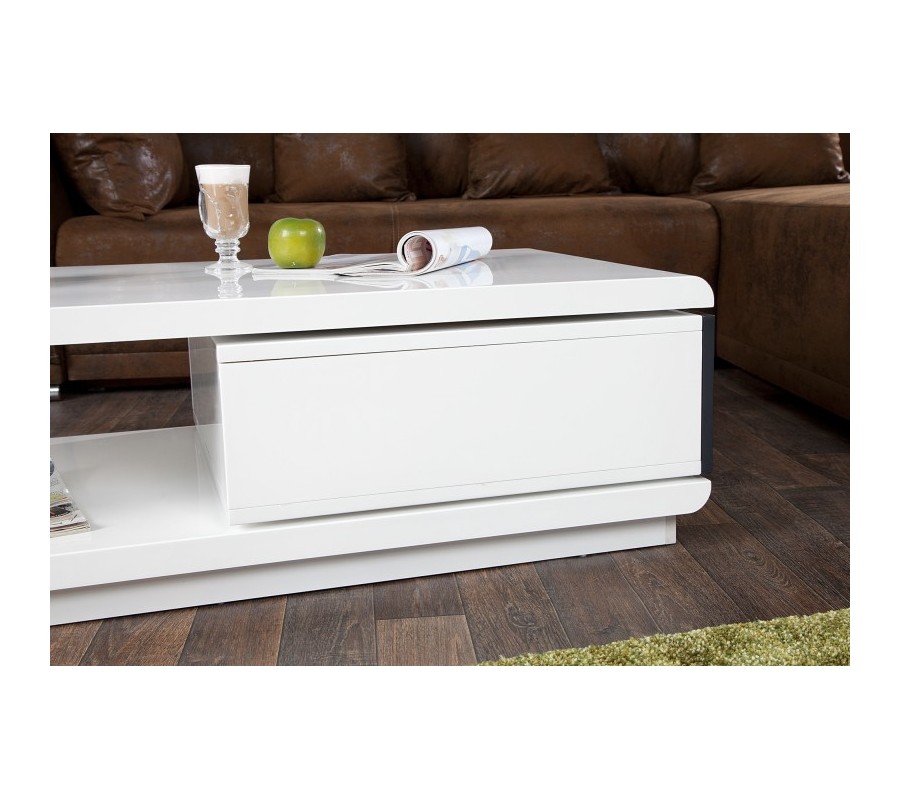 Stylový moderní konferenční stolek Fortuna v atraktivním bílém lesku působí elegantním a funkčním designem. Velká antracitově zbarvená zásuvka dodává stolku výjimečný akcent. Tento stylový stolek se skutečně hodí do každé domácnosti.