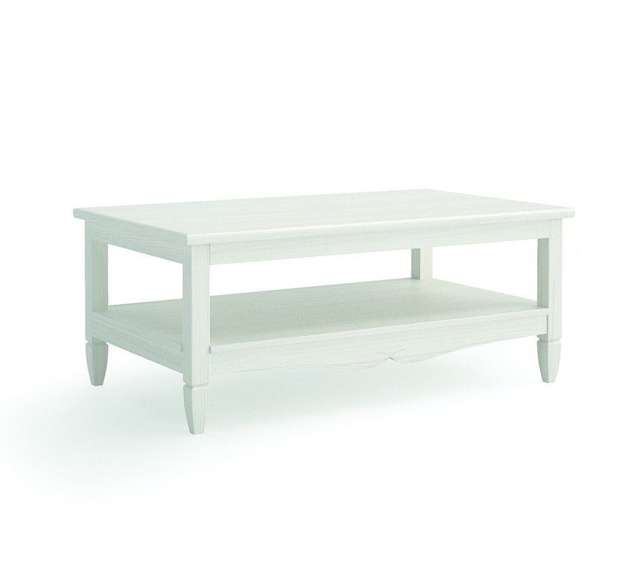 Luxusní venkovský masivní konferenční stolek Amberes s obdélníkovou výsuvnou vrchní deskou a policí s vyřezáváním 110 cm