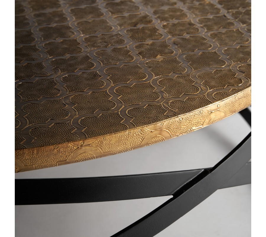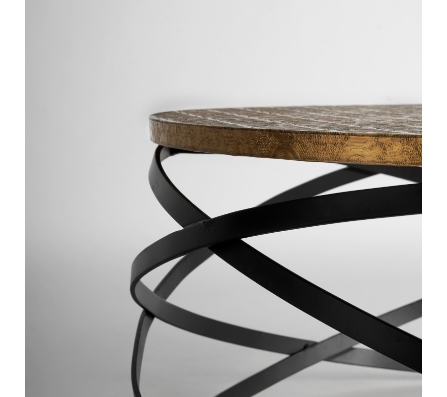 Jedinečný konferenční stolek Nassau už na první pohled zaujme svým designovým provedením. Tvoří jej povrchová deska kruhového tvaru nesoucí se ve zlaté barvě, a černá kovová konstrukce vytvářející organický spirálovitý tvar. Kombinace masivního mangového dřeva a kovu zajišťují prvotřídní kvalitu a nadčasový vzhled s jemným art-deco nádechem. Ten je umocněn předešvětkým detailním ornamentálním zdobením na povrchové desce, které vytváří zajímavý vzor. Konferenční stolek Nassau rozzáří a zpříjemní prostory moderních obývacích pokojů ale lze jej umístit i do art-deco laděných kaváren či čajoven. Díky industriálnímu nádechu kovové konstrukce nic nezkazíte ani doladěním do industriálně zařízených prostor. Vynikne zejména v kombinaci s nábytkem z masivního dřeva as kovovými doplňky ve výrazných barevných odstínech.