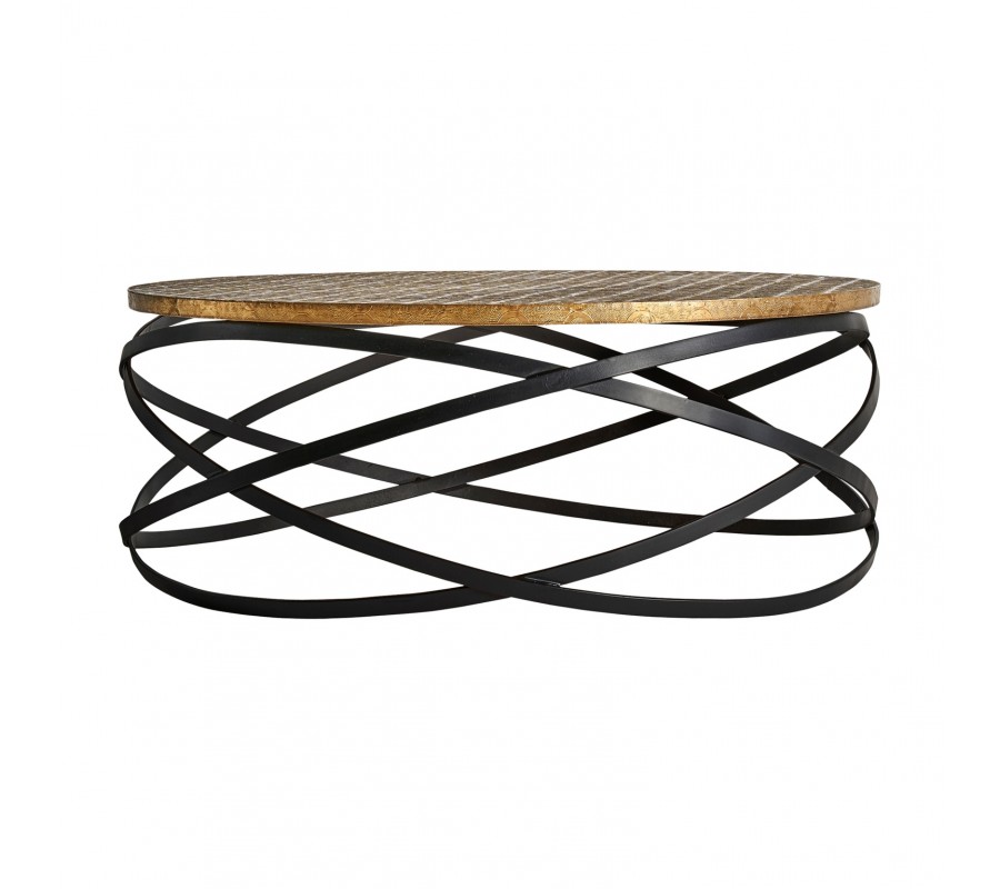 Art-deco kulatý konferenční stolek Nassau do obývacího pokoje s černou podstavou a zlatou povrchovou deskou 100cm