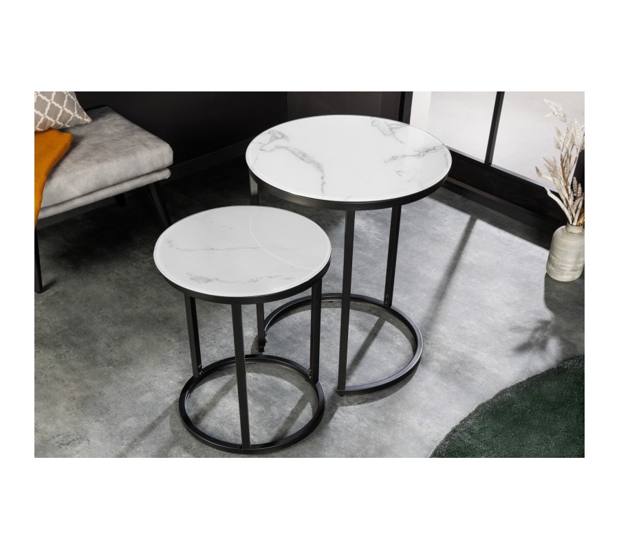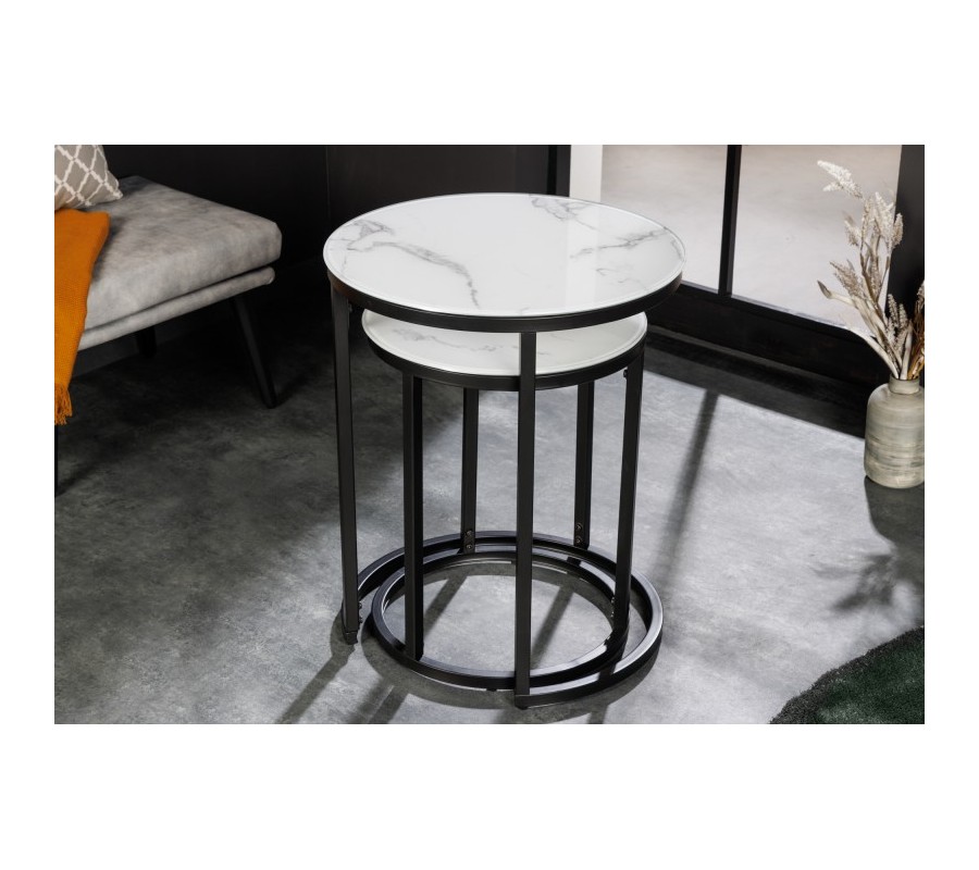Designový kulatý set příručních stolků Industria Marbleux v moderním stylu v provedení bílý mramor 60 cm