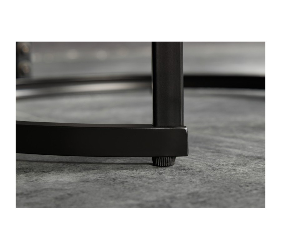 Stylový set dvou příručních stolků z kolekce moderního nábytku Industria Marbleux svým elegantním designem krásně doplní moderně zařízené interiéry. Designová stránka moderního setu Industria Marbleux se může pyšnit vrchními deskami z kvalitního bezpečnostního skla, které je v provedení bílý mramor. Mramorový vzhled desek příručních stolek Industria Marbleux je doplněn černou kovovou podstavou se třemi přímými nožičkami, spojenými ve spodní části podstavy. Vrchní mramorové desky setu Industria Marbleux disponují tloušťkou 6 milimetrů a maximální nosností do 50 kilogramů. Designový set moderních příručních stolků Industria Marbleux skvěle doplní moderní obývací pokoj v bílé a černé barvě se světlým barevným čalouněním koberců, sedaček a křesel.
