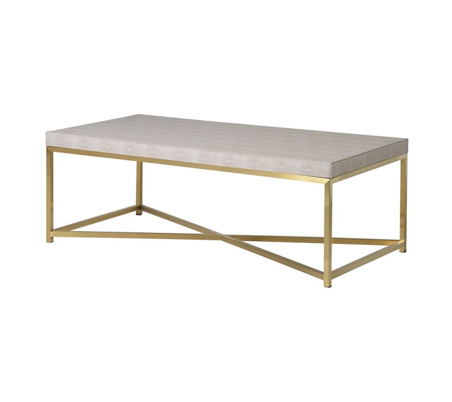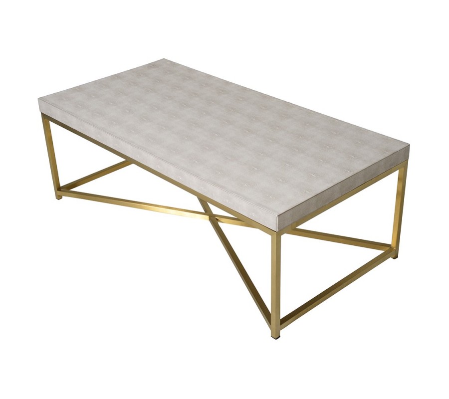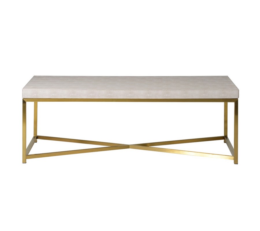 Stylový glamour konferenční stolek se zlatými nožičkami a koženou deskou v béžové barvě s art deco nádechem 60 cm