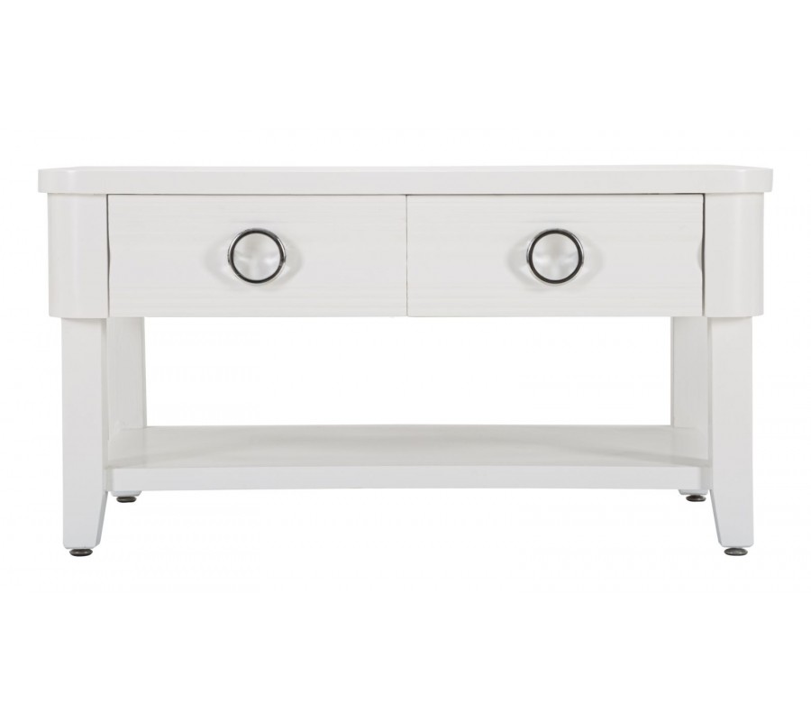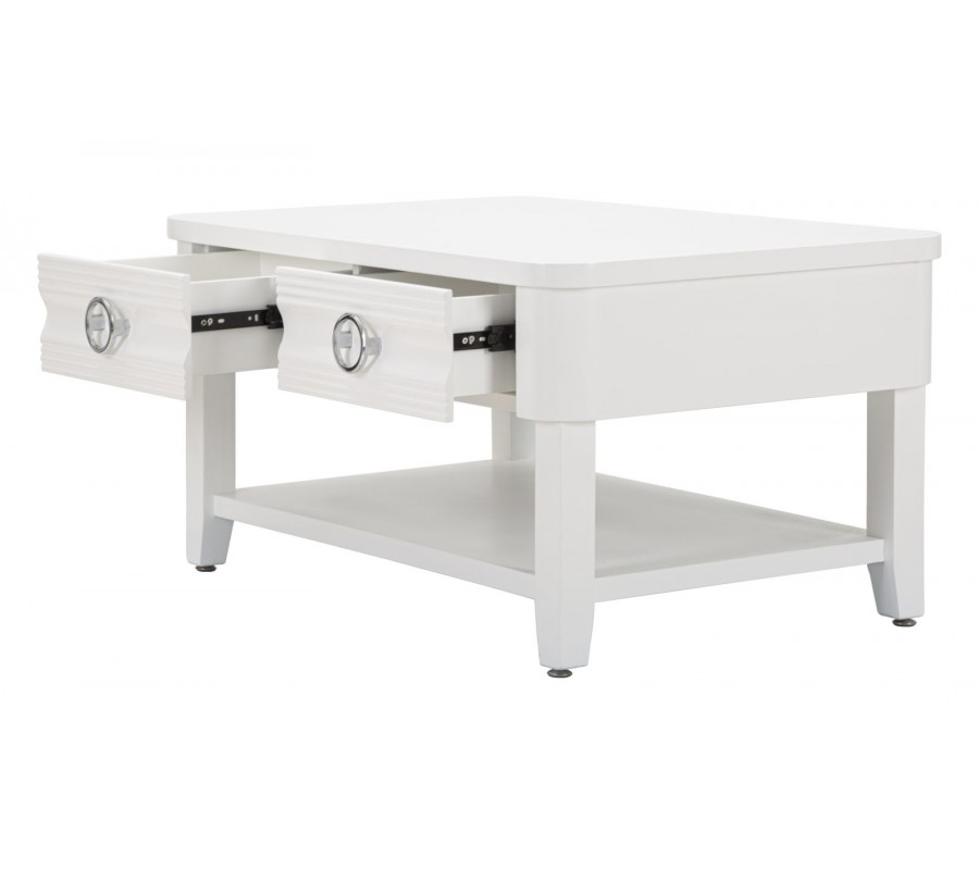 Luxusní moderní obdélníkový konferenční stolek Lucido Bianco se dvěma šuplíky a policí v lesklém bílém provedení 90 cm