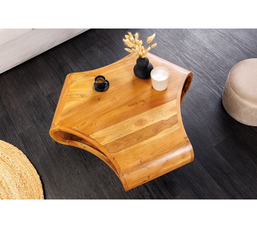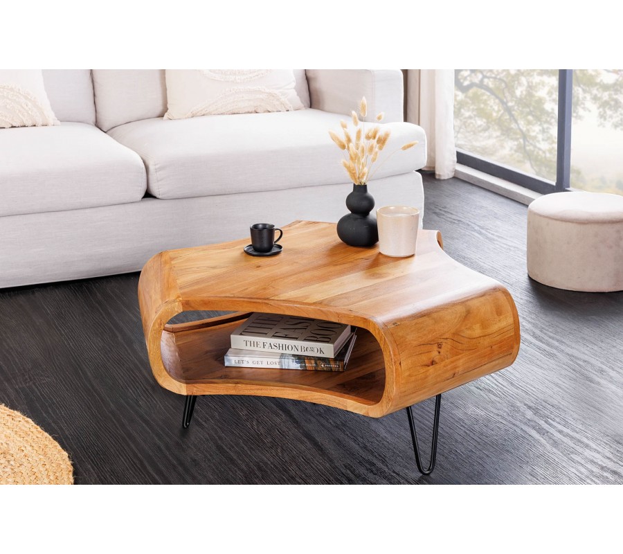 Konferenční stolek Spin bude stylovým středobodem vašeho obývacího pokoje. Spojuje moderní design s industriálními prvky a organická silueta v kombinaci s masivním dřevem přinese do prostoru harmonický přírodní element.